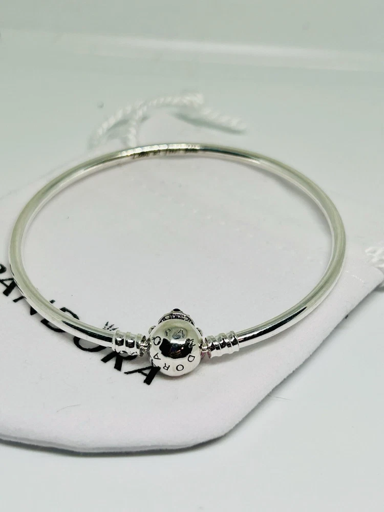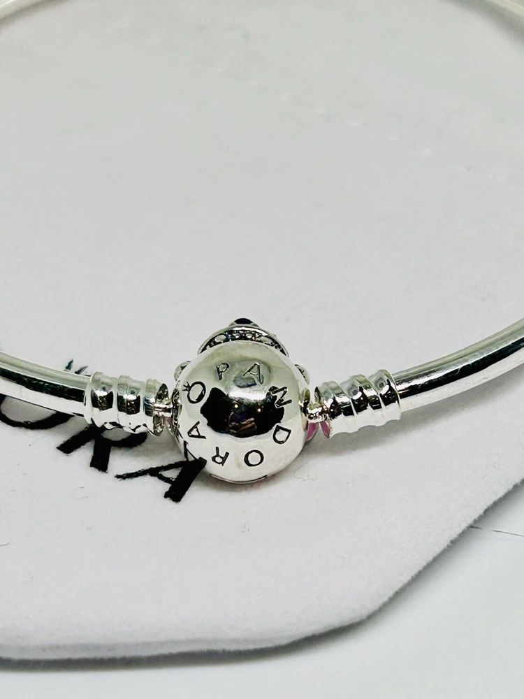 NEW PANDORA 591683C01 925 Silver Disney Stitch Biting Clasp Bangle Bracelet size 21 cm Says “Love at first bite” S925 Sterling Silver ALE New with tag and dust bag