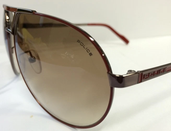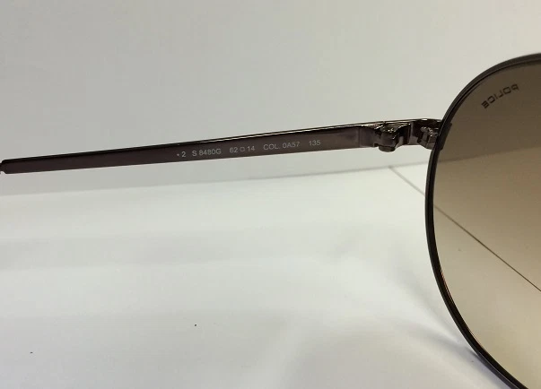 Brand: POLICE Made In: Italy Character: none Theme: Logo Style: Aviator Temple Length: 135 mm Lens Technology: Gradient Modified Item: No Type: Sunglasses Magnification Strength: NA Frame Color: Brown UPC: 883663320650 Lens Color: 2-tone brown Department: UNISEX UV Protection: 100% UV MPN: 8480G 0A57 Product Type: Sunglasses gtin13: 883663320650 Features: Aviator Country/Region of Manufacture: Italy Model: 8480G 0A57 Lens Material: Polycarbonate Frame Material: Metal