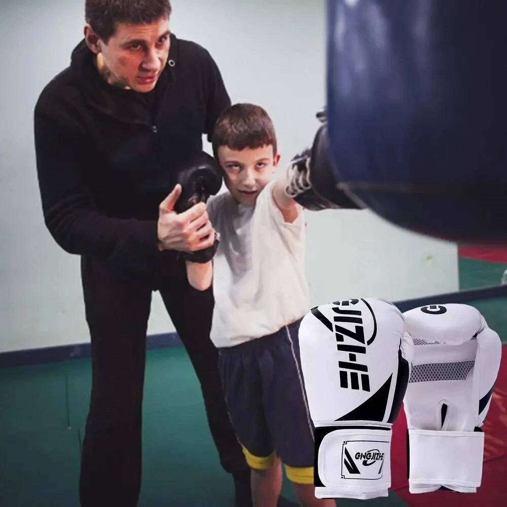 Welcome to the Fit N Fast Store. NEW PU Kids Boxing Punching Gloves For MMA Martial Art Taekwondo Karate Training Description: 1. Ideal for Muay Thai, Kickboxing, and gym training. 2. The firmness helps with shock absorption. 3. Aids in hard training and is recommended for children under 14. Specification Product Name: Boxing Gloves Material: PU Weight: about 0.3 (kg) Applicable scenarios: fitness and body, extreme challenges, martial arts self-defense Color: black, white Size: 6-oz, 8-oz Packing List: 2pcs*Gloves Thank you for visit my store.