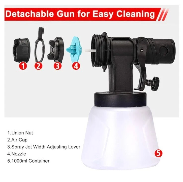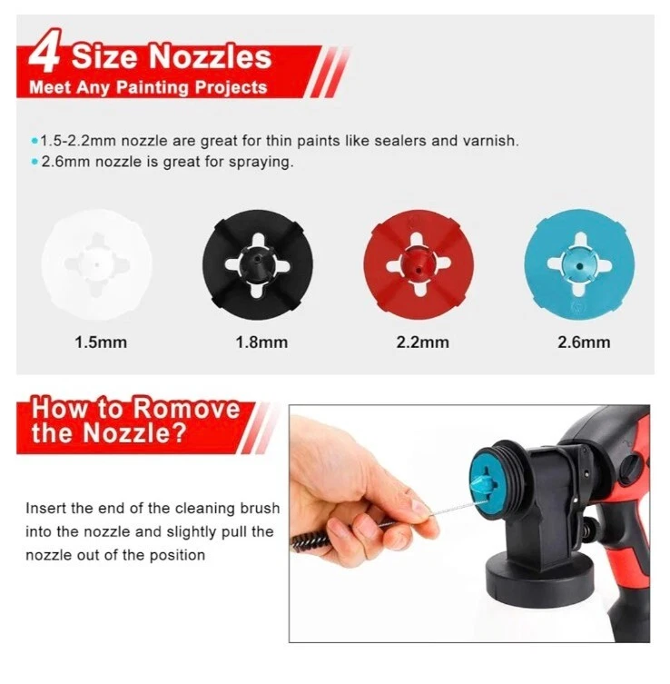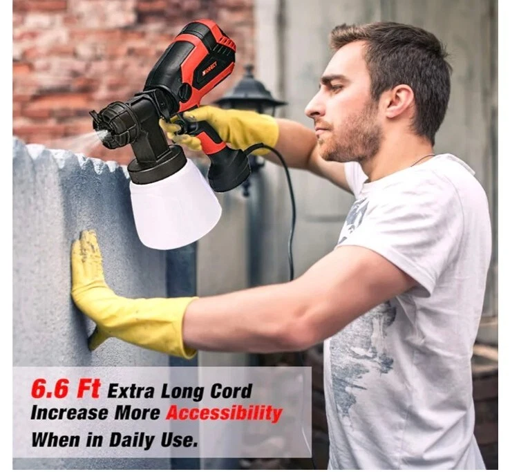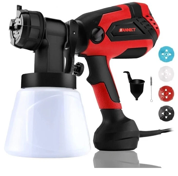 New in Box VANNECT paint sprayer is great for beginners and experts alike when painting and refinishing furniture, kitchen cabinets, trim, and more! With 700W high power, Providing accurate spray patterns to create a smooth and superior finish. It’s the best paint sprayer option for painting furniture, cabinets, trim, and more The paint sprayer is equipped with 4 different nozzle sizes (1.5mm / 1.8mm / 2.2mm / 2/6mm), different nozzle sizes can meet different family projects, 1.5 mm to 2.2 mm nozzles are great for thin paints like sealers and varnish. The 2.6 mm nozzle is great for spraying latex paint and chalk type paint