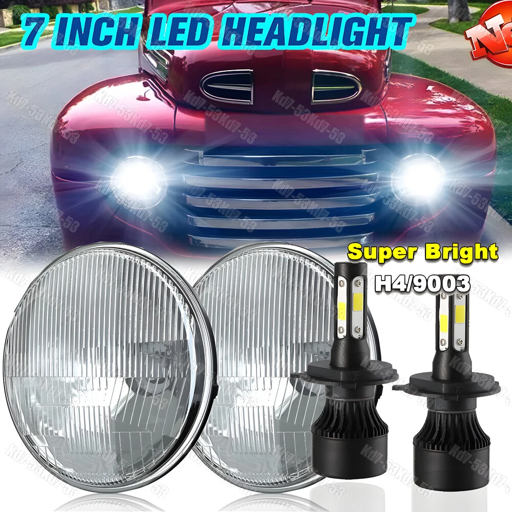 Item description: New 7" Inch Round Diamond Crystal Clear Glass Lens / Headlight Conversion Kit contains everything you need to upgrade your headlights to the newest headlight technology while keeping that classic look! Features: 1). Newest Unique Design, High Quality and Classic Apperance, Perfect Light Pattern, Safe on Road ! 2). Housing has Removable bulb sockets for you to install the new bulbs! 3). Perfect design: DOT, SAE legal lights. Made with high-quality chip and Clear PC Lens, sturdy hardness and perfect heat dissipation,more brighter and durable than halogen or HID headlights, more than 100,000 hour lifespan. 4). Direct Plug & Play design (certain vehicles will require slight modification),Fits cars and trucks with 7" round headlights 5.) Fit for Jeep Wrangler Unlimited JK 4 Door Unlimited (2007-2018); for Jeep Wrangler JK 2 Door (2007-2018); for Jeep Wrangler TJ Unlimited / LJ (2003-2006);for Jeep Wrangler TJ (1997-2006); for Jeep CJ-8 Scrambler (1981-1985); for Jeep Wrangler CJ-7 (1976-1986); for Rubicon Sport,Sahara, for AM General Humer (1992~2001);for Humer H1&H2 (2003~2009) (H2 needs 9007 male to H4 female adapter, package not included) Professional Installation is highly recommended Specification: Dimension: 7" Dia.(7 inch)Input: 12-24V DCOperating Voltage: 9-32V DCMaterial: Aluminum + PMMA Clear LensLens Pattern: High & Low BeamWaterproof:IP67-68Connector: H4 / 9003 (Low Beam and High Beam)Life Span: Above 50,000 Hours Brand New in box! Universal Fitment for vehicles using 7" Round housing: H6024 Made with High Quality Glass Lenses - NOT cheap plastic! Improved appearance with Diamond Cut design! Brighter than standard housings to Improve road visibility and safety! Direct Plug & Play design (certain vehicles will require slight modification) Professional Installation is highly recommended Warranty: 1 Years Package include: 2PCS 7 inch Round Headlights Housing 2pcS 4-Side H4/9003 High & Low Beam Bulbs