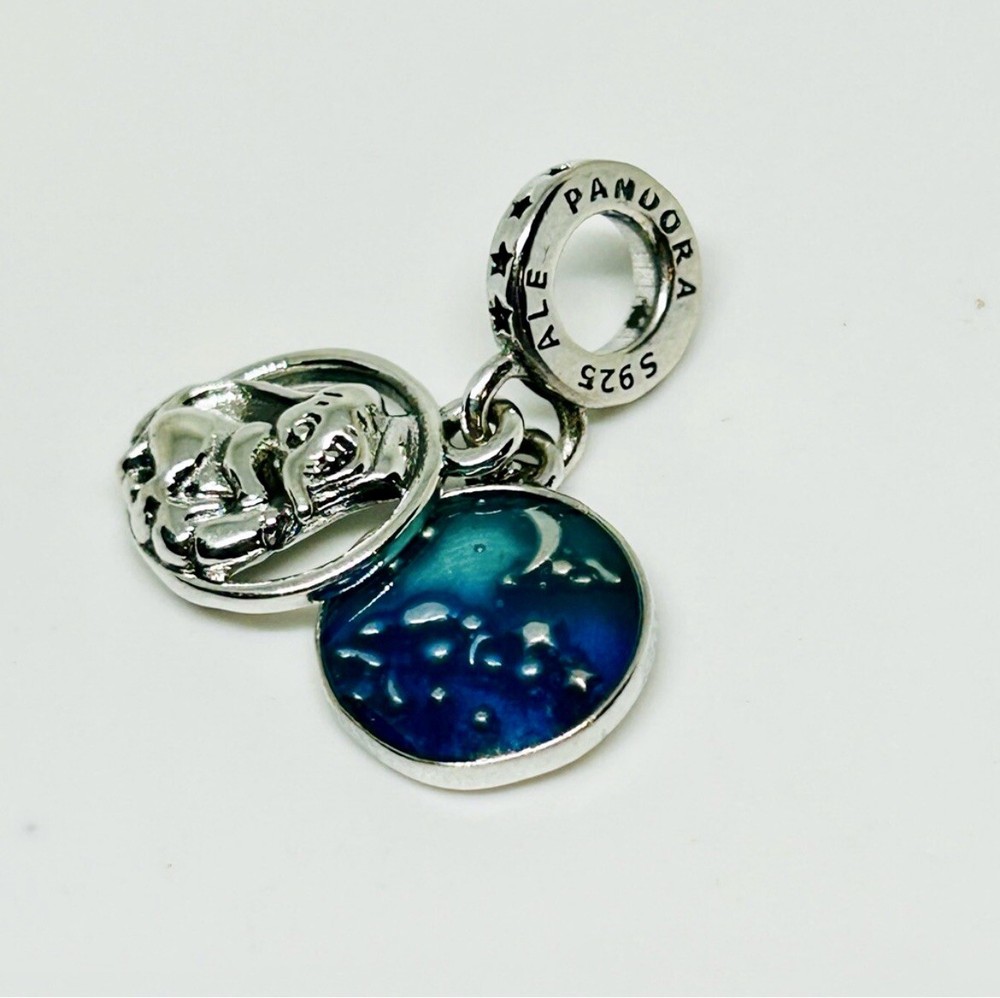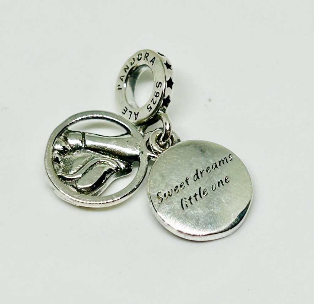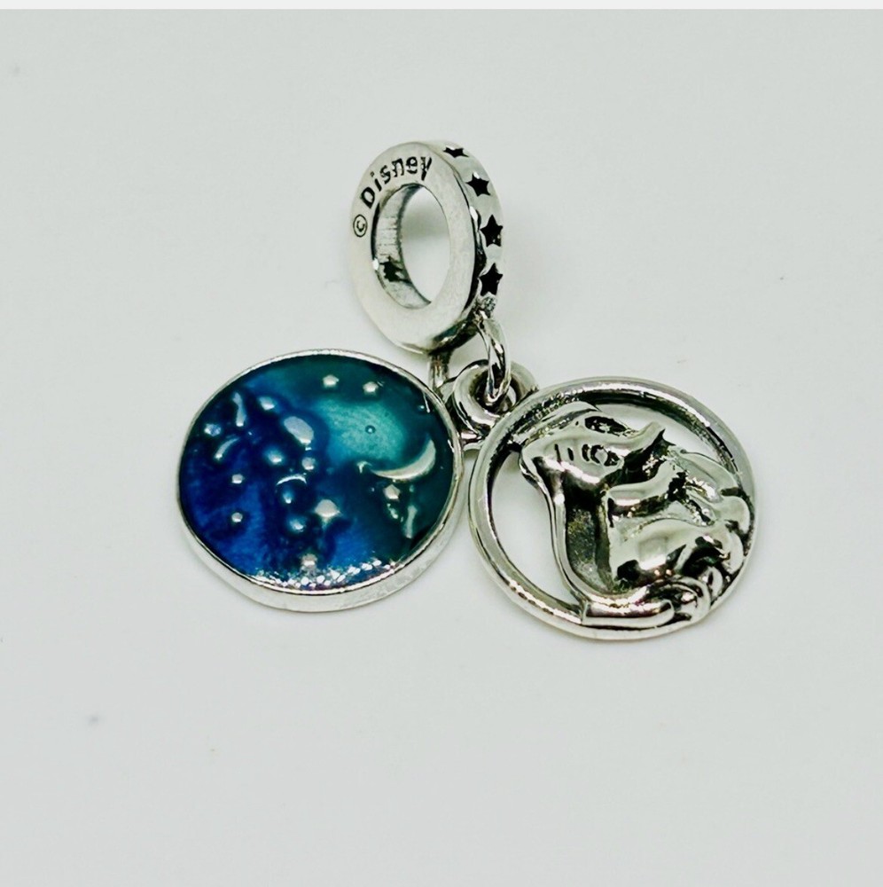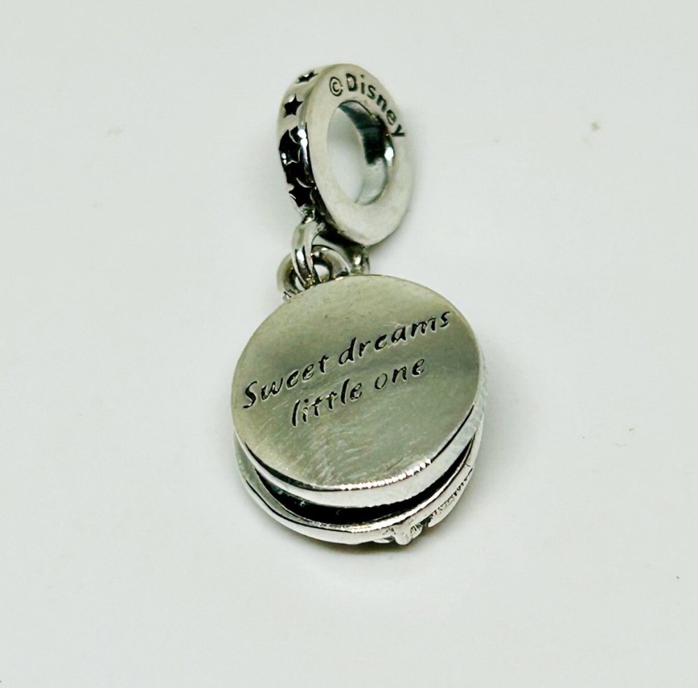 799405C01 . Camera may distort color slightly. Please look at all the photos, it is part of the description. This is a sterling silver charm made by Pandora. It is a dangle charm with a Disney Dumbo theme, specifically a "Sweet Dreams" charm. It is designed to be added to a bracelet or necklace. The charm is made in Thailand and is pure .925 sterling silver. It is suitable for various occasions such as Mother's Day, Christmas, Graduation, Anniversary, Birthday, and Valentine's Day. New with tag and dust bag.