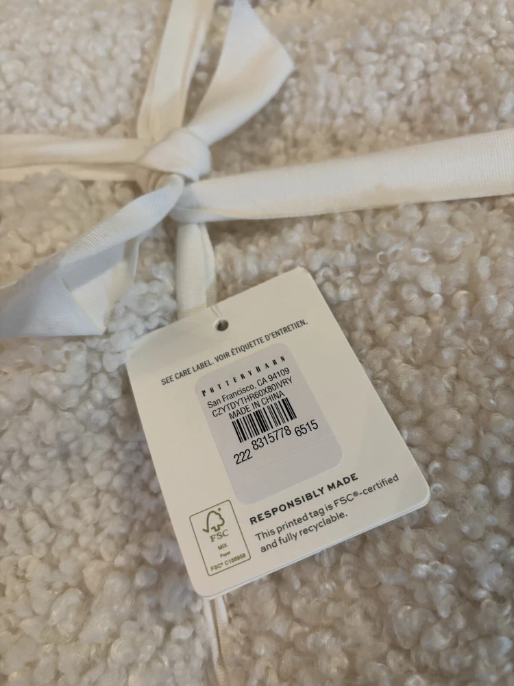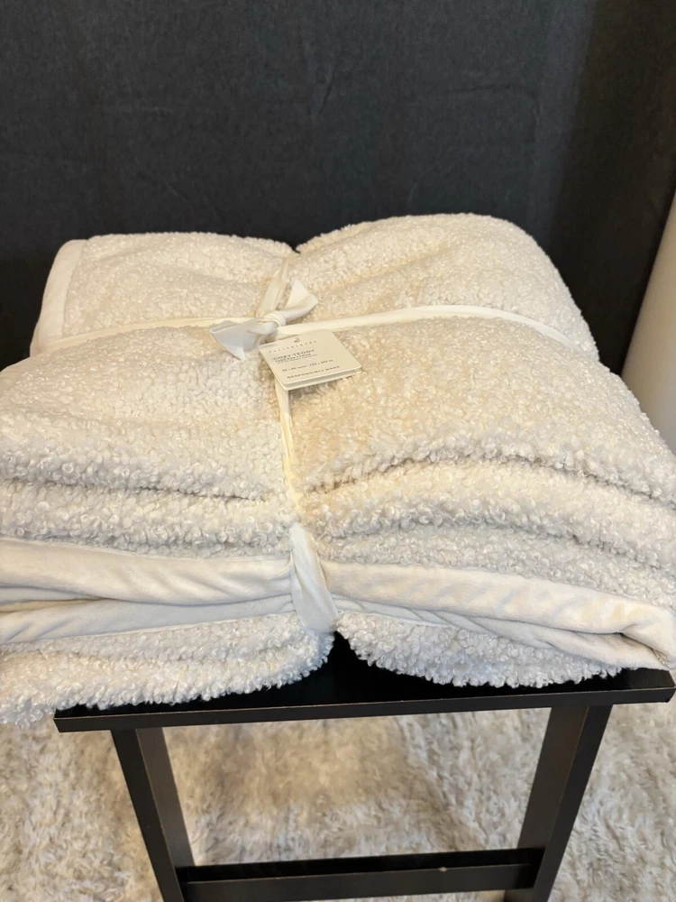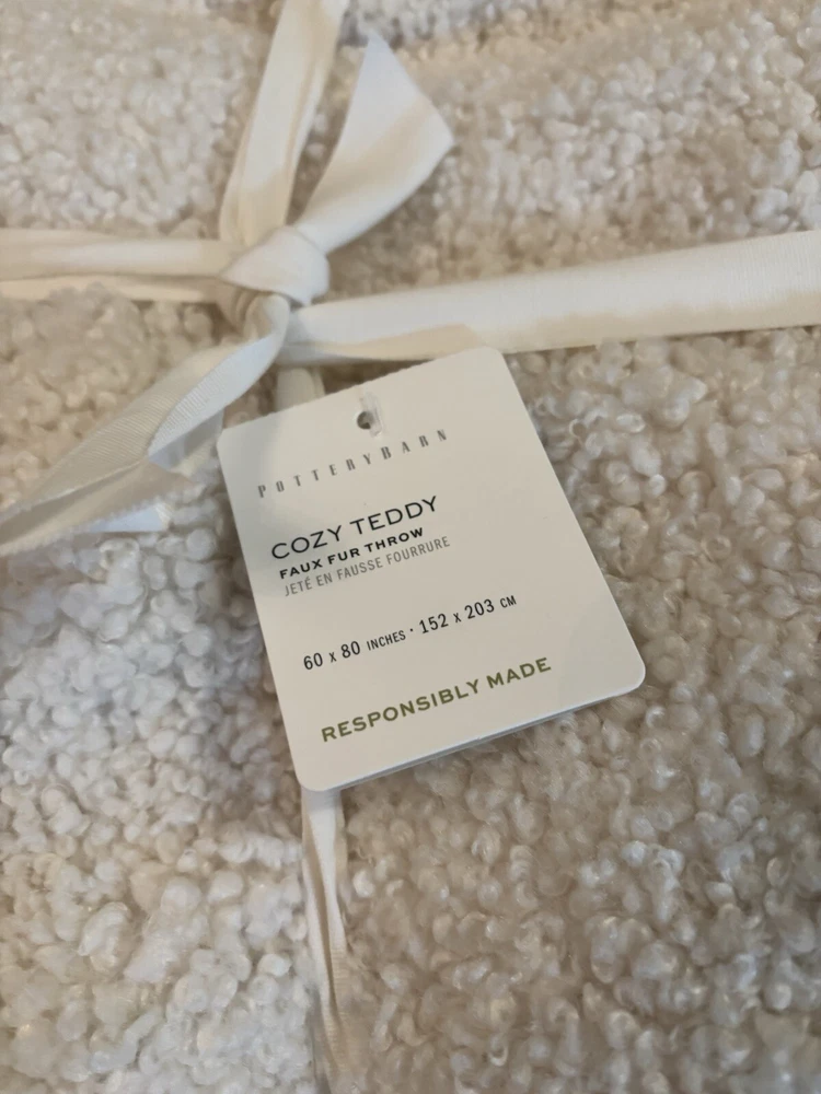 NEW Pottery Barn Cozy Teddy Faux Fur Throw, Oversized 60”x80”, Ivory New with tags Color: Ivory Size: 60”x80” Soft, plush, and cozy, these faux fur throws are a casual yet elevated addition to a modern layered sofa. Woven of 100% polyester. OEKO-TEX® STANDARD 100: tested for 1000+ harmful substances to keep you and your family safe.