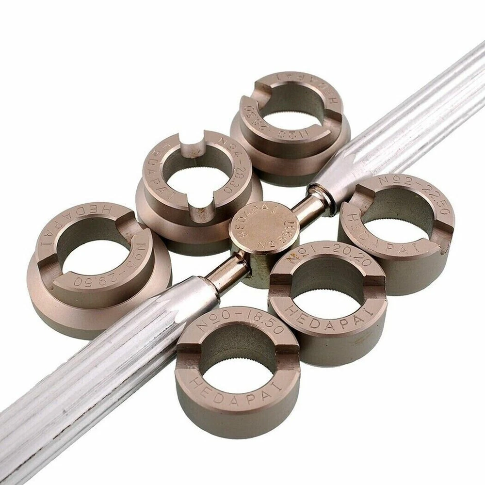 Features: 100% Brand new and high quality This hand wrench is made to open watches case back Sturdy construction Designed for opening and fitting screw cases for R olex and for Tudor Includes wrench and six grooved dies 6 grooved chucks, diameter sizes (mm) 18.5, 20.2, 22.5, 26.5, 28.3, 29.5 NO.0-18.50mm (0.73 inch) NO.1-20.20mm (0.8 inch) NO.2-22.50mm (0.89 inch) NO.3-26.50mm (1 inch) NO.4-28.30mm (1.11 inch) NO.5-29.50mm (1.16 inch) Specification: Color: silver Material: metal Size: 18.5mm, 20.2mm, 22.5mm, 26.5mm, 28.3mm, 29.5mm Package included: 1x Wrench 6x grooved dies