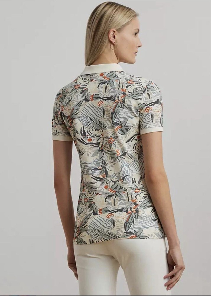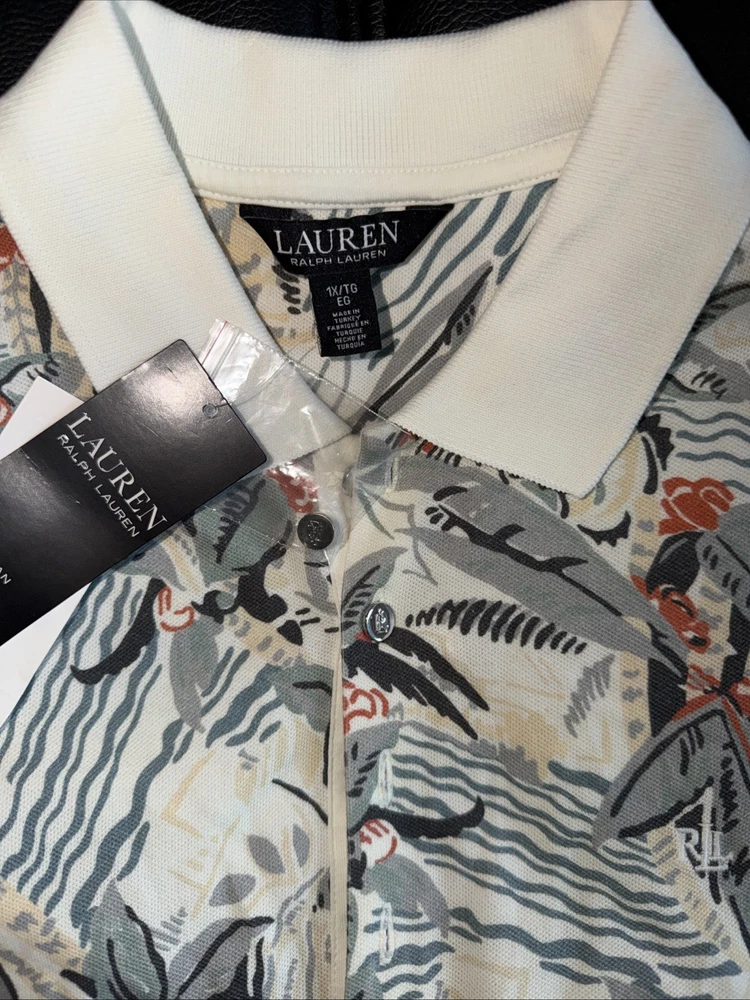 This product is a new Ralph Lauren Size 1X Print Stretch Piqué Polo Short Sleeve Shirt Top in multicolor. It features a slim fit with a regular size type, perfect for women looking for a stylish and comfortable top. The stretch fabric adds flexibility and ease of movement, making it a versatile piece for everyday wear. Whether paired with jeans for a casual look or dressed up with a skirt for a more formal occasion, this polo shirt is sure to make a fashionable statement.