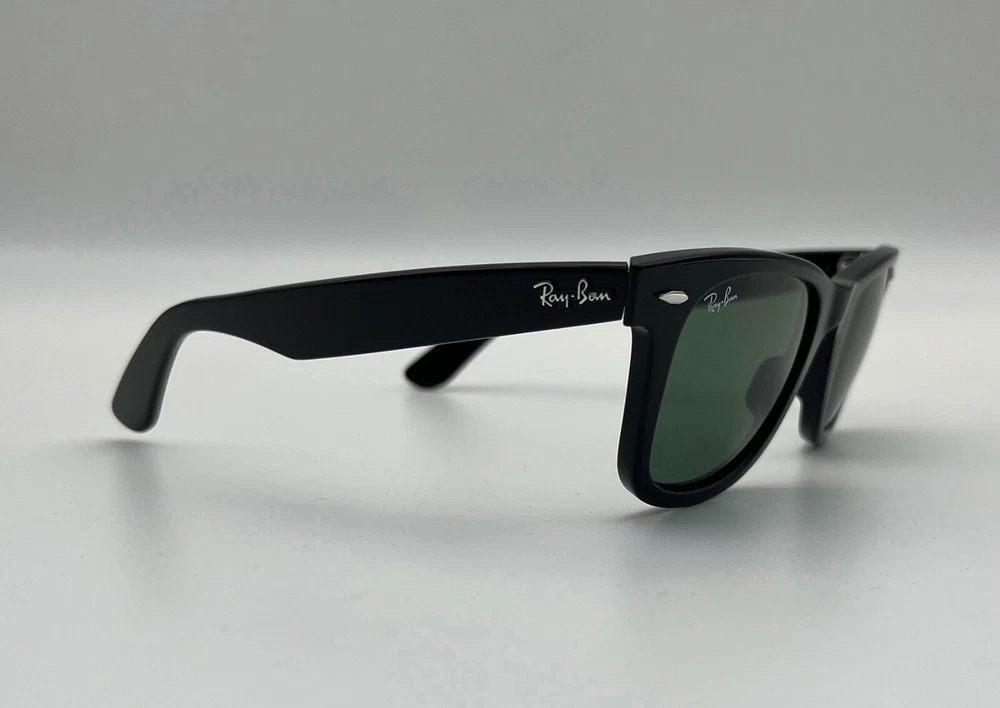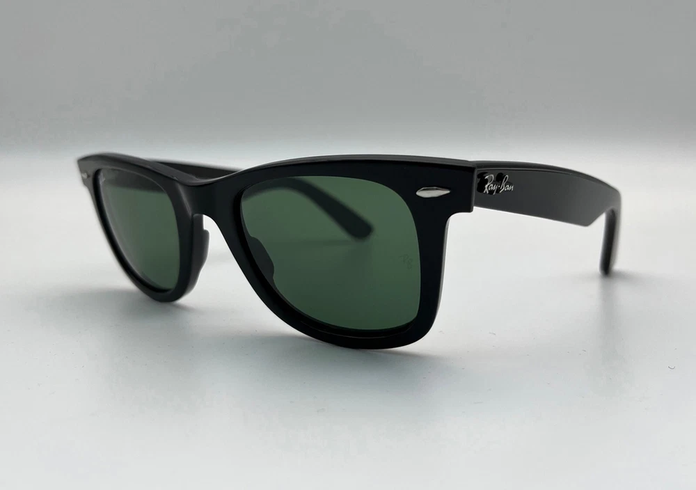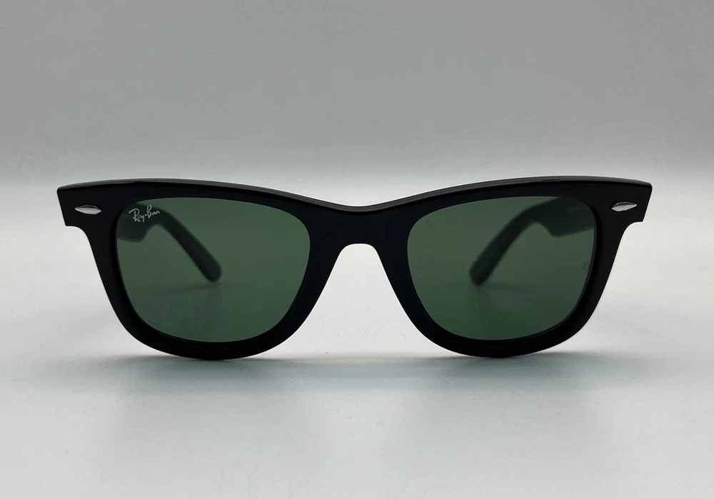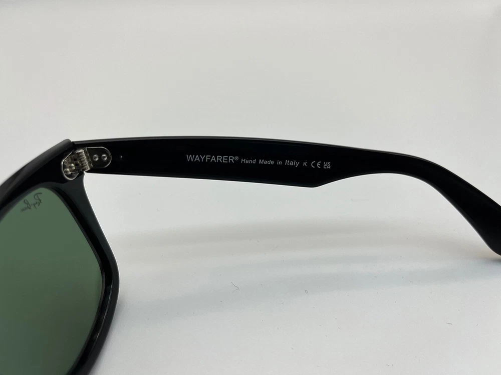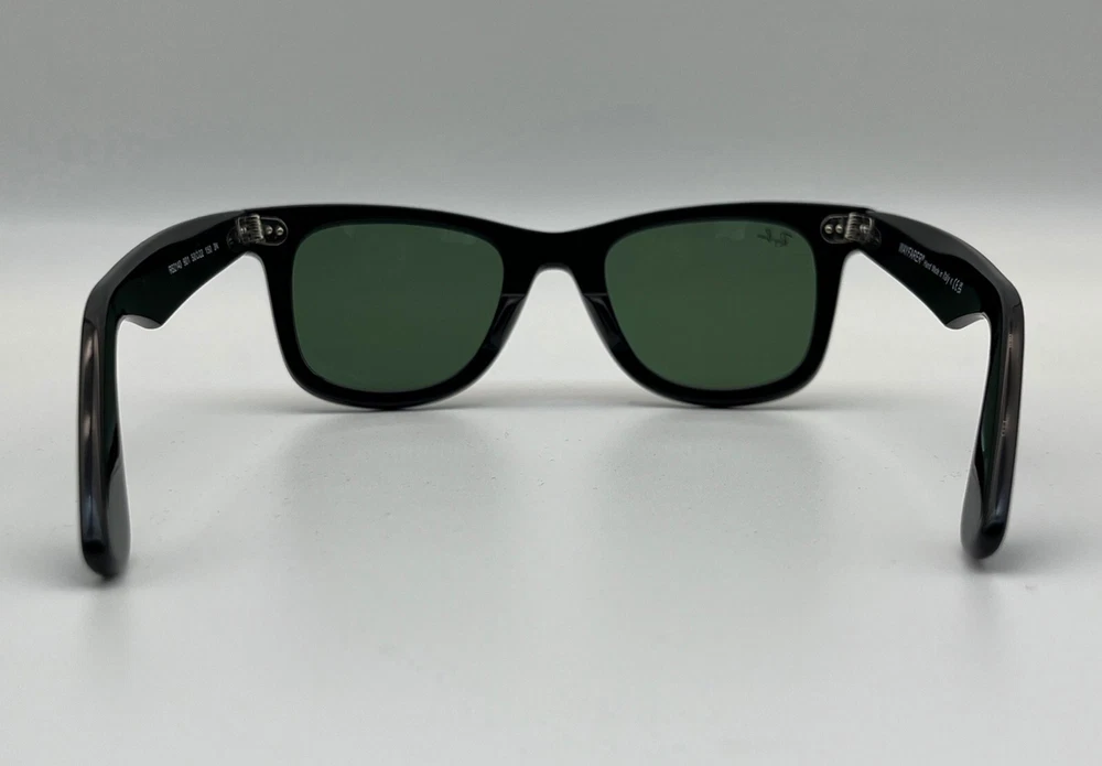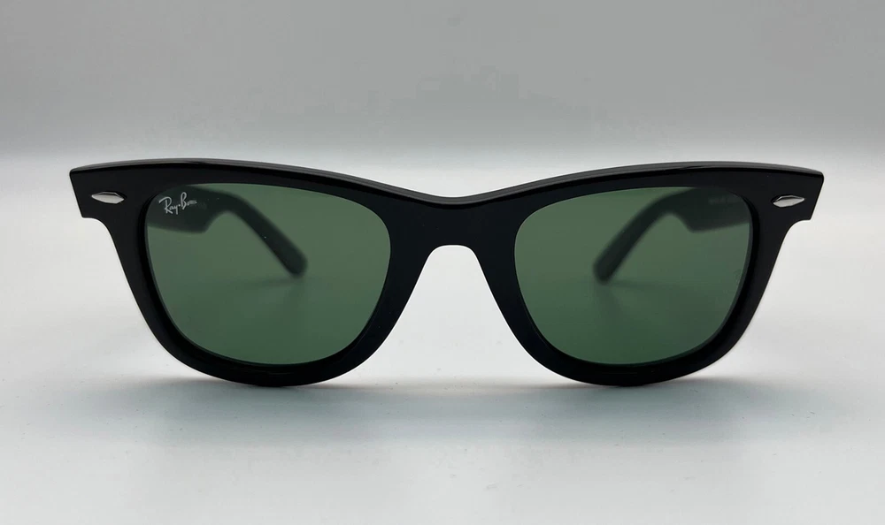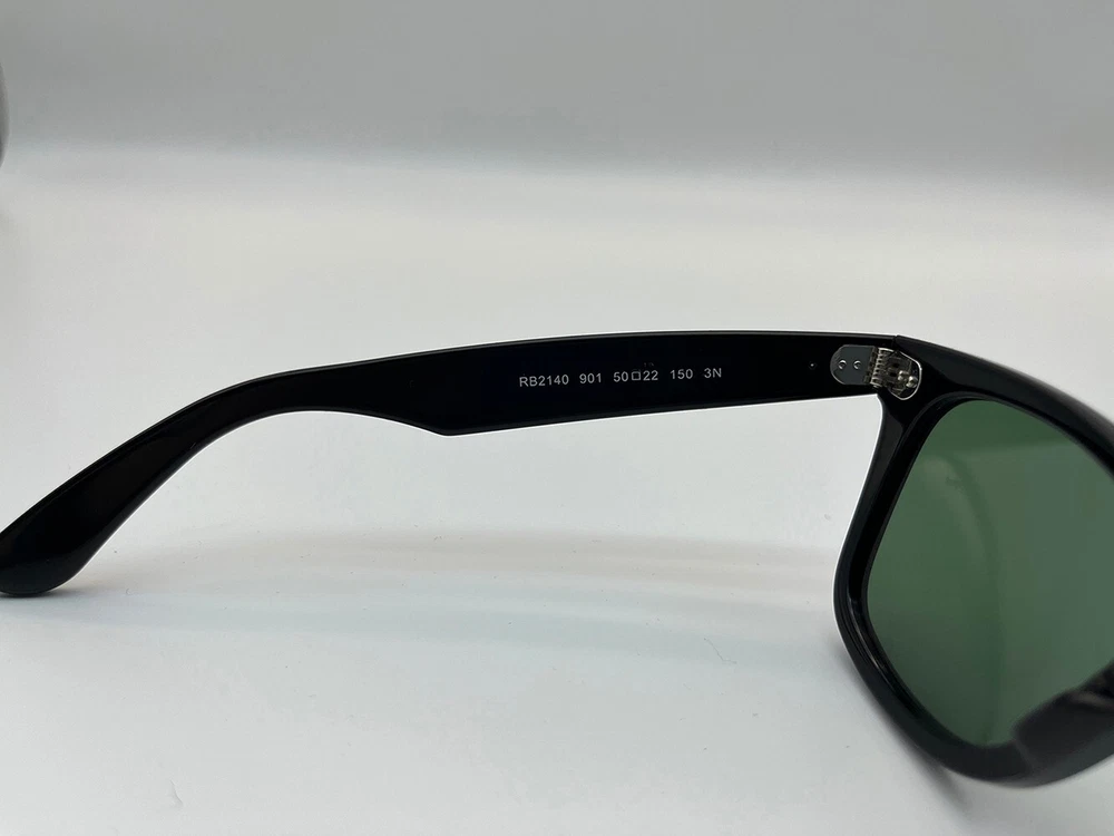 NEW Ray-Ban RB2140 901 Sunglasses Original Wayfarer Polished Black Green Lenses PLEASE STUDY PHOTOS BEFORE BIDDING PRODUCT DESCRIPTION BRAND:Ray-Ban STYLE:Wayfarer REFERENCE:RB2140 901 50-22 FRAME COLOR:Polished Black UV Protection:UV400 Frame Material:Plastic SIZE Lens: 50 mm. Bridge: 22mm. Temple: 150 mm. LENS COLOR G-15 Green Classic ALL PICTURES IN THIS LISTING ARE THE ACTUAL PICTURES OF THE PRODUCT SUNGLASSES + CLOTH + CASE + BOOKLETS + BOX Features: A pair of Ray-Ban wayfarer sunglasses crafted in a black acetate frame featuring Green Classic G-15 lenses. They offer the highest degree of clarity and comfort, while providing 100% UV protection. Lens: 50 mm. Bridge: 22mm. Temple: 150 mm. Happy shopping!