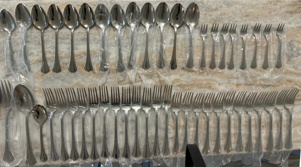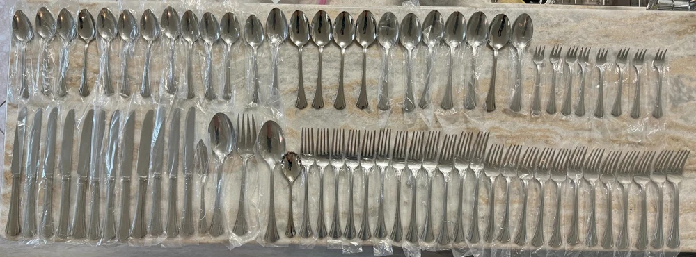 I usually ship next business day! I also offer a combined shipping discount,if you purchase more than one item, you must purchase first, then once I pack and print out the label, I will issue you a partial refund for the difference.Mix lot of 73 pieces, includes serving pieces!! Covington (Stainless) by REED & BARTON Description: Stainless, 18/10, China, Glossy Pattern: Covington (Stainless) by Reed & Barton Status: Discontinued. Actual: 2013 - 2015 lot includes: 8 seafood forks 1 sugar spoon 1 flat butter knife 2 large serving spoons 1 large meat fork 12 knives 12 dinner forks 12 salad forks 12 place spoons 12 teaspoons