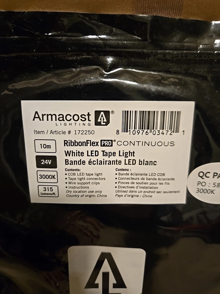 Introducing the RibbonFlex Pro 32.8 ft. (10M) 24-Volt LED Tape Light in White, with 315 Lumens. This high-quality tape light from Armacost is perfect for any home or garden lighting project. The tape is 3 ft. long and comes with a light sensor, making it easy to use and maintain. The LED lighting technology ensures bright and efficient lighting, while the white color of the tape adds a modern and elegant touch to any decor. This tape light is ideal for string lights, fairy lights, and other lighting projects. Order now and add a touch of magic to your home or garden!