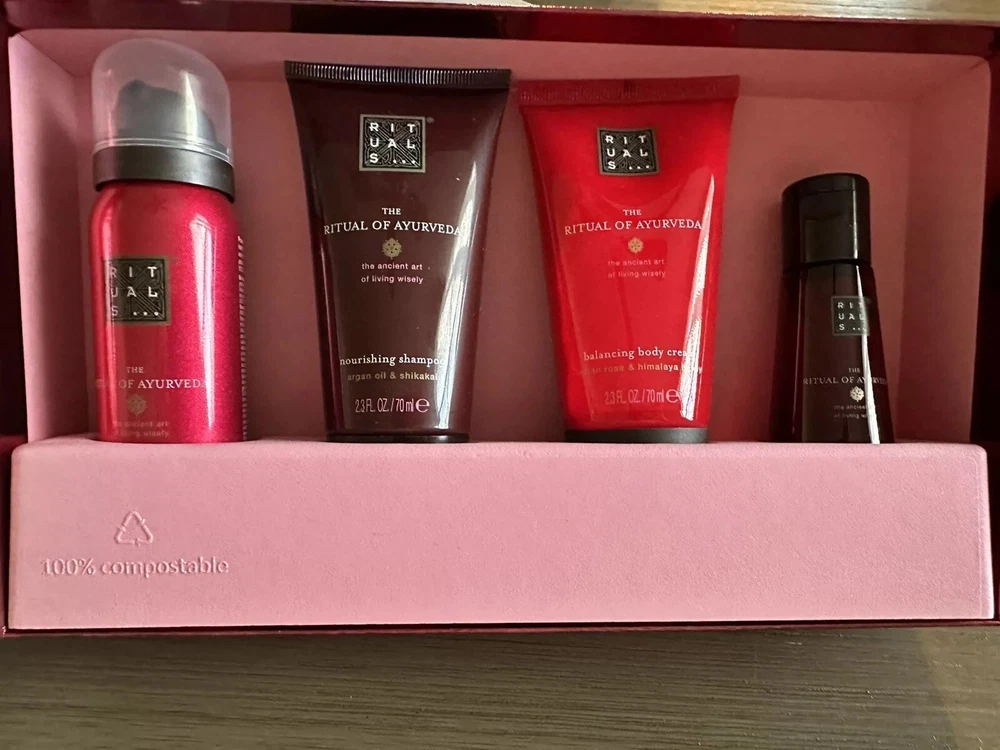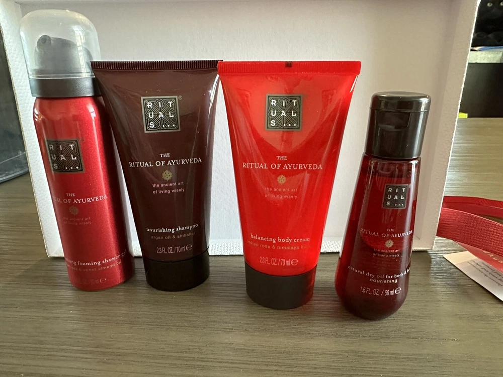 NEW Rituals The Ritual Of Ayurveda: 4 Rebalancing Bestsellers 4 Piece Gift Set. Now is the time to start thinking about getting those Christmas gifts! This 4 piece gift set would make the perfect gift! Item shown in photos is exact item buyer will be receiving The front tag has some bend marks (see photos) Products are all new!