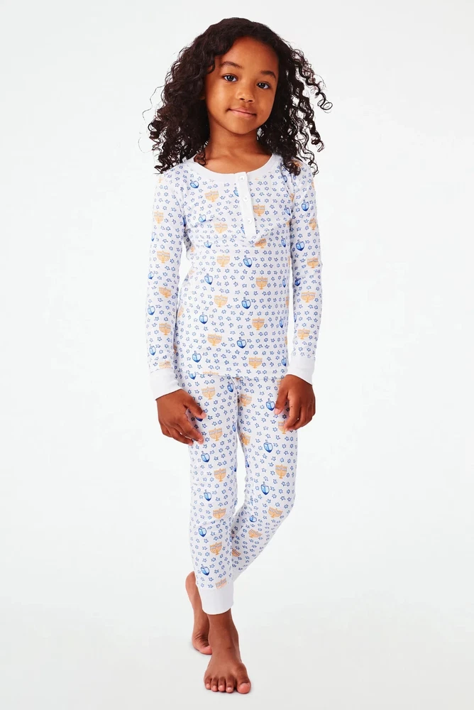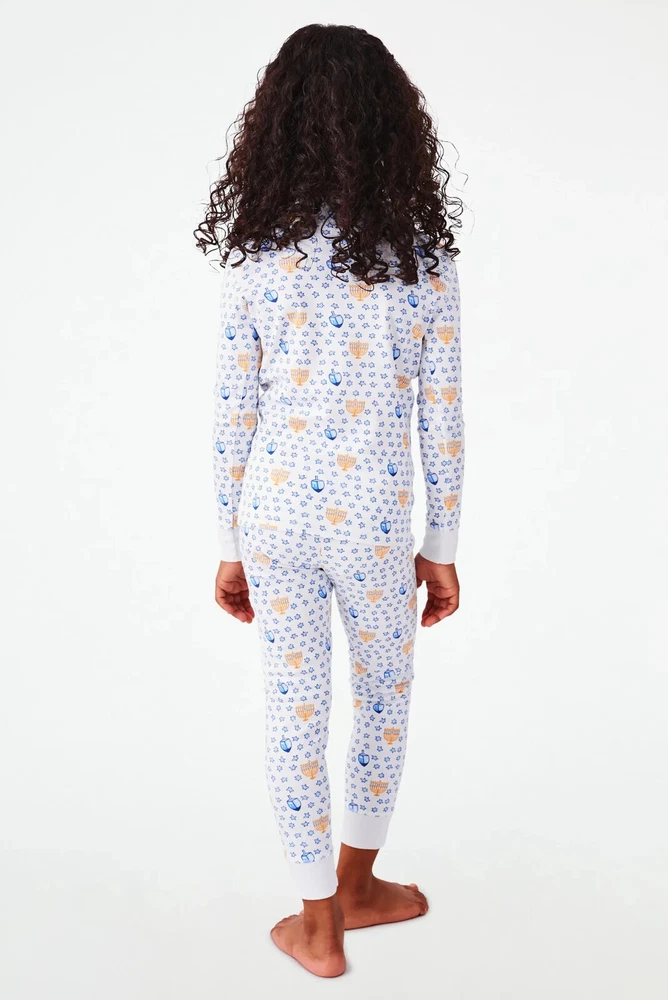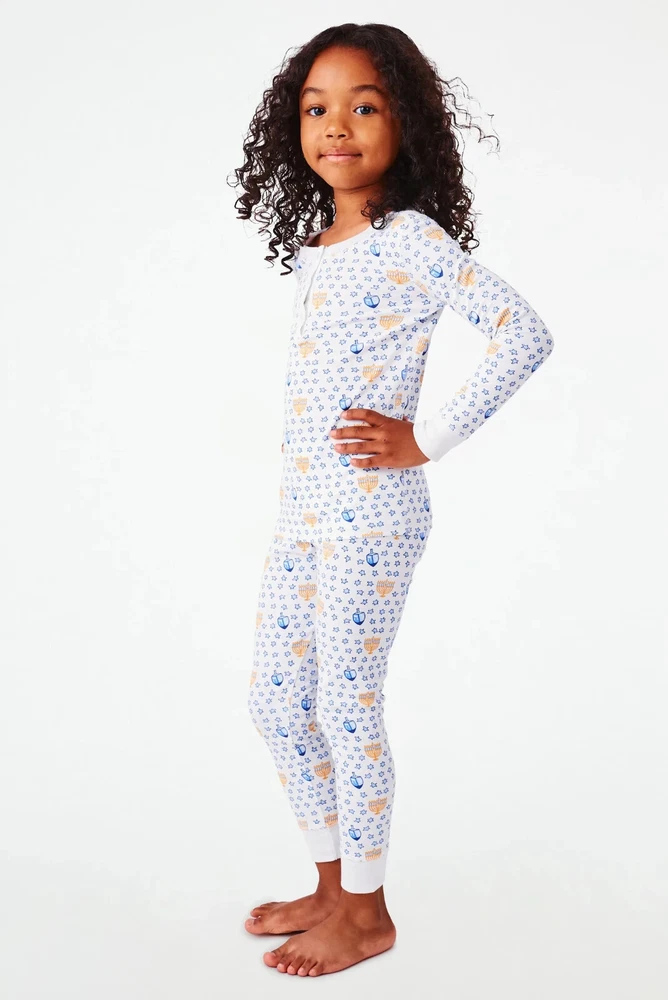 Brand new with tags Unisex Size 4 Free shipping Product Description For Hanukkah and beyond! Celebrate in the Festival of Lights Kids Pajamas, a super-soft two-piece PJ set in a holiday print. Kids will love the teeny tiny dreidel, menorah, and star print for eight crazy nights! 3 Button Henley Elastic Waist Super-Smooth Flatlock Seams Runs Small; Please Size Up Materials and Care 100% Pima Cotton Machine Wash Cold, With Like Colors Do Not Bleach, Tumble Dry Low (Line Dry Recommended) Imported Prewashed