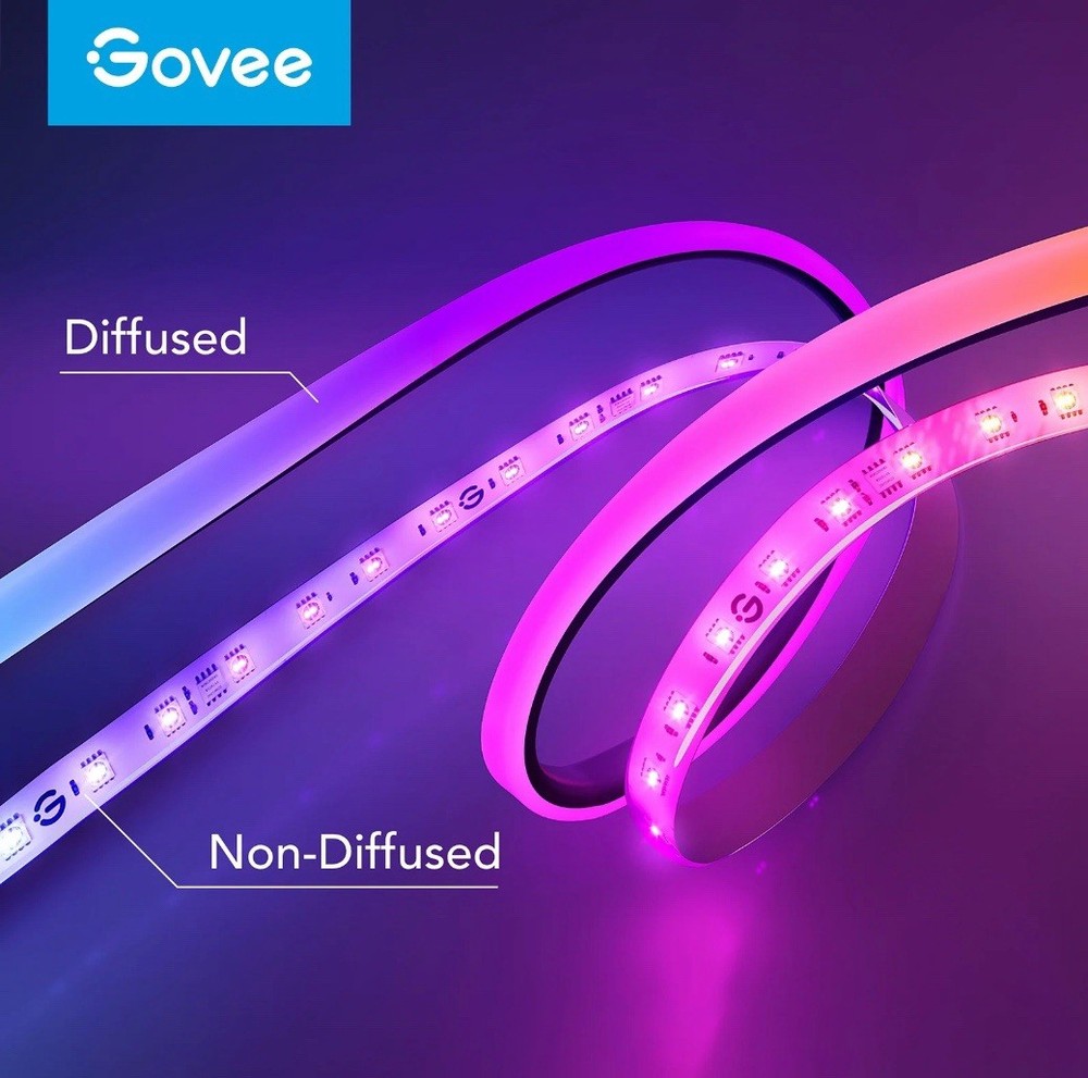 Take your gaming desk to the next level with the Govee Gaming Neon Rope Light. This light easily creates gorgeous lighting effects for more advanced game lighting. Segmented RGBIC Lighting: 42 controllable segments customize RGBIC lighting effects. Glare-free Diffusion: Diffused Glare-Free Game Lighting Unlike conventional RGB, Govee RGBIC Neon Rope Light produces a uniform luminous surface by utilizing back-facing LED emission, for seamless & glare-free game lighting. Cuttable: Can be cut on any of 12 specific cutting points and resized to ensure a perfect fit for most desks. AI Dreamview: Sync with Gaming Sync Box and Razer Chroma. Softer Neon Silicone Materials: More smooth and durable. Smart Activation: Simple voice commands via Alexa and Google Assistant.