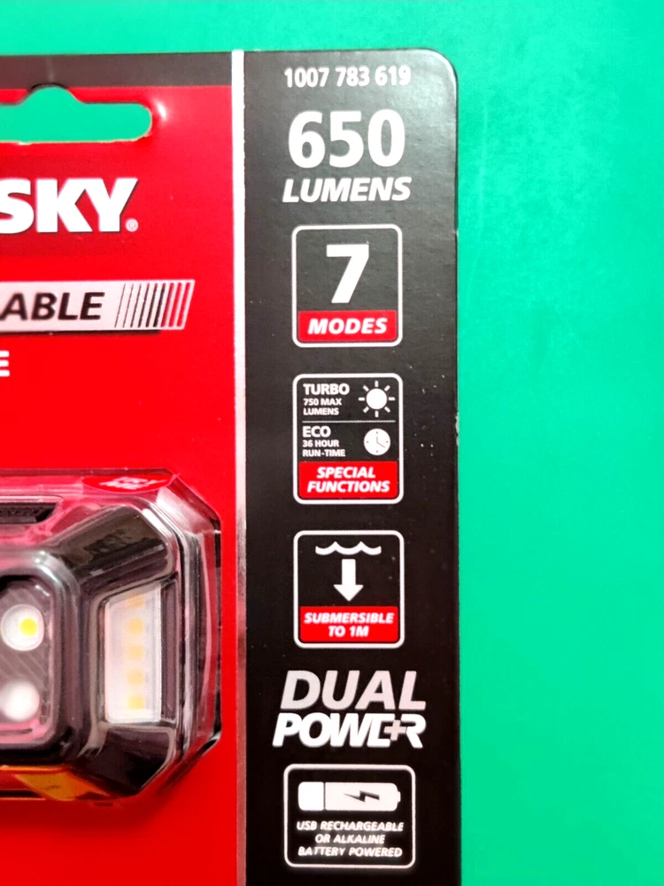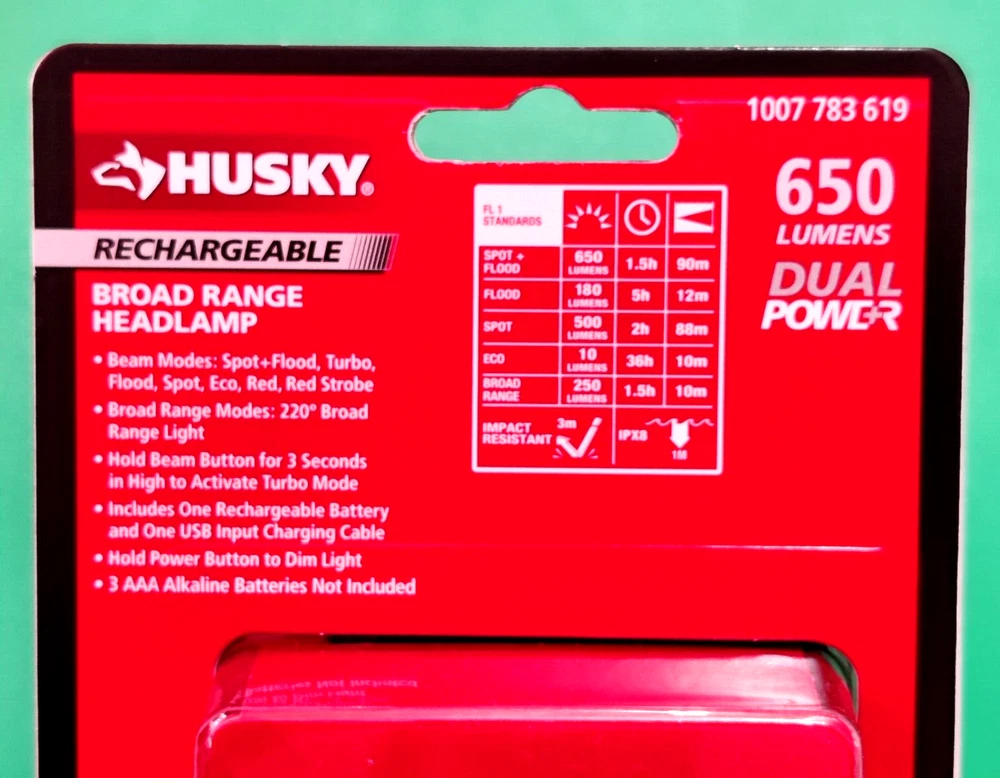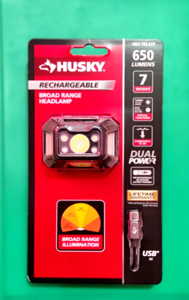 Illuminate your outdoor experiences with the Husky 650-Lumens Broad Range Dual-Power Headlamp, a robust addition to your camping gear. Designed for versatility, this headlamp features a dual-power option, allowing for a high-powered 650-lumen output or a more focused, low-powered setting. Crafted with durability in mind, the HSKY650DPHL model is manufactured in China and boasts a long-lasting design to accompany your night-time adventures. Whether you're hiking through dark trails or enjoying a late-night fishing trip, this headlamp from the reputable brand Husky provides reliable and bright illumination.