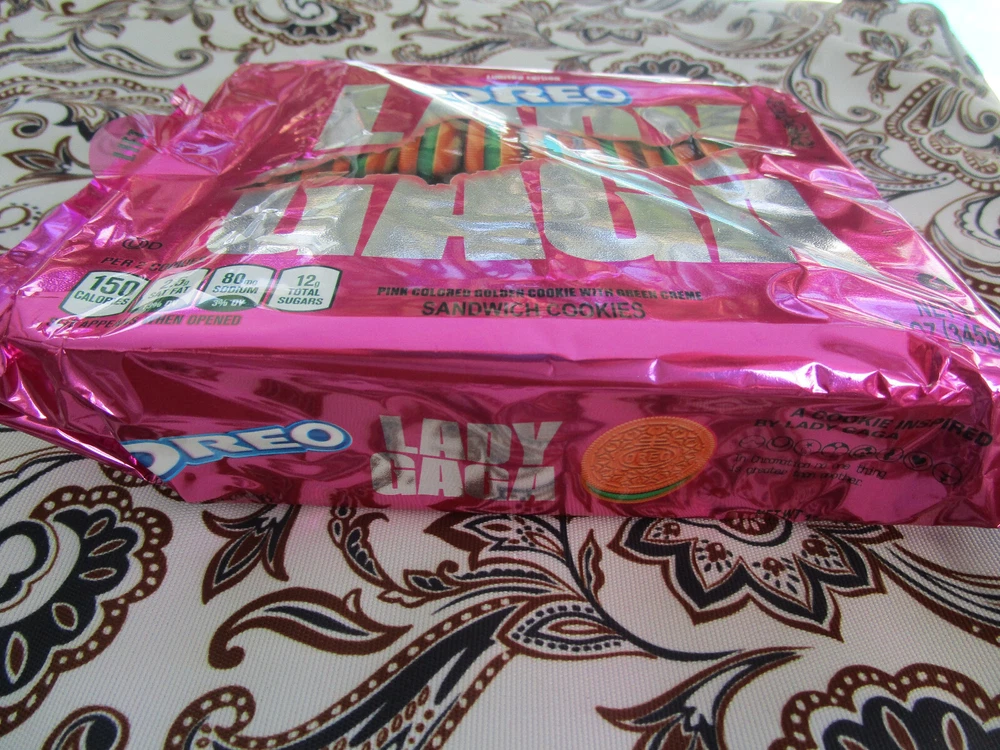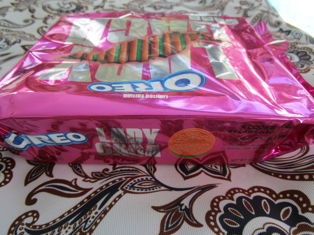 Lady Gaga's limited edition Oreo Chromatica Sandwich Cookie. This 12.2oz package contains about 12 servings of this vegan cookie. This box-packed cookie is a must-have for any fan of Lady Gaga or Oreo. The expiration date of 2021 so despite the package being new and unused these cookies are old. Don’t eat them.This is purely a collection / fan item - will ship a box so not to get crushed! Also the more you buy obviously i will combine shipping!