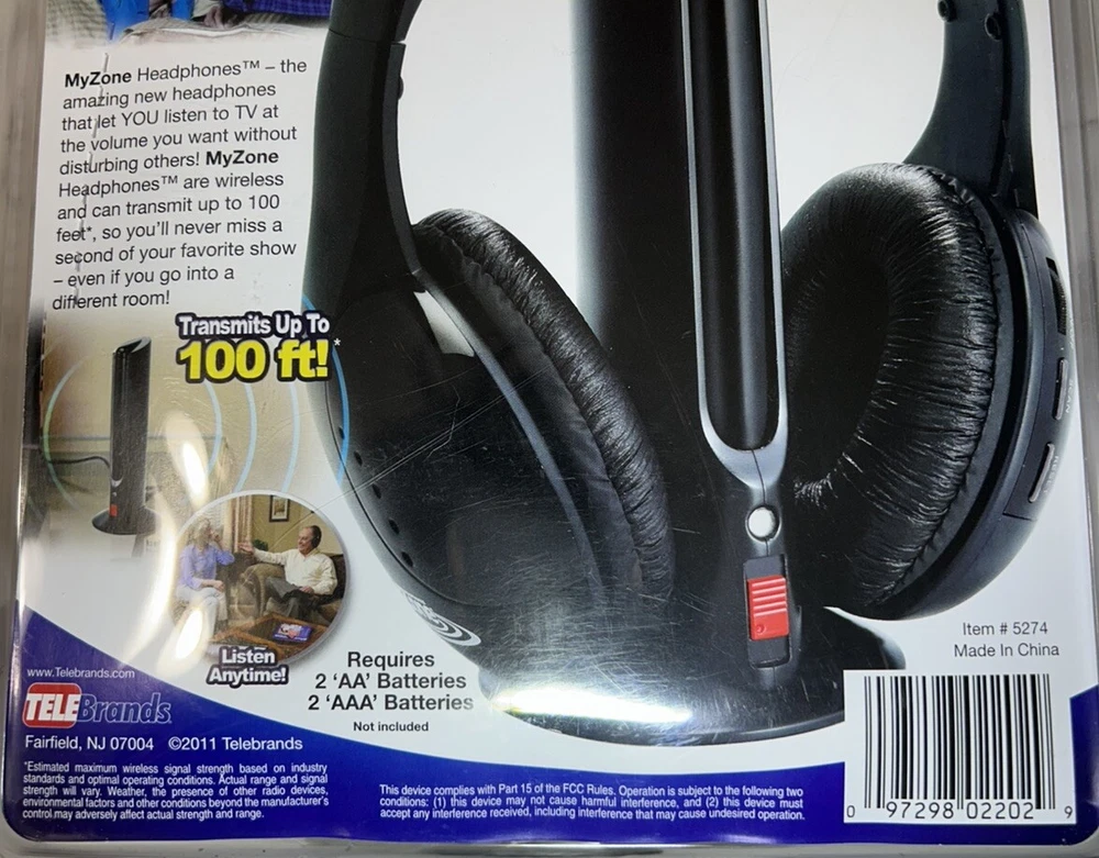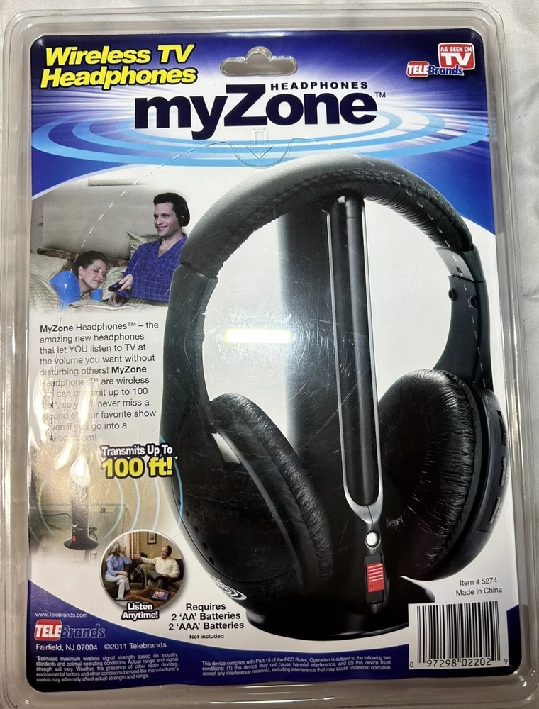 NEW SEALED My Zone Wireless TV Portable Black Headphones