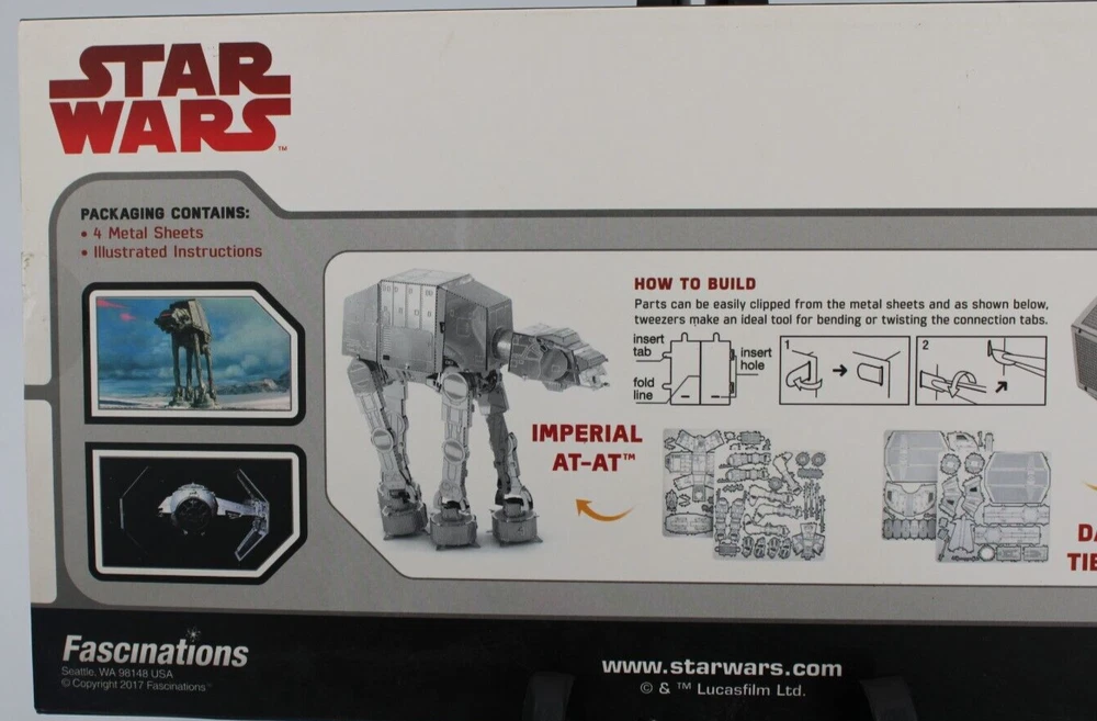NEW! STAR WARS METAL EARTH IMPERIAL AT-AT WALKER/DARTH VADER'S TIE ADVANCED X1 Factory Sealed Steel Model Kits No Glue or Solder Needed Packaging Contains 4 Metal Sheets Illustrated Instructions See photos for details