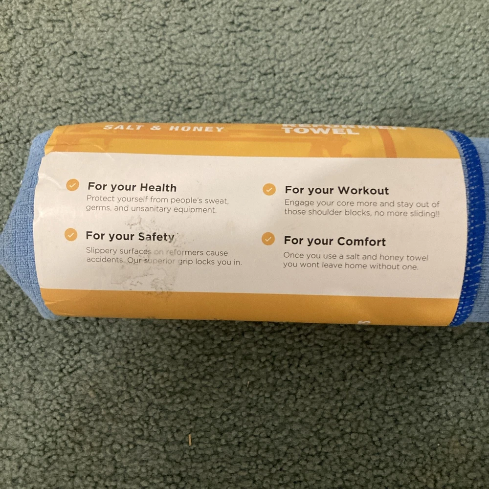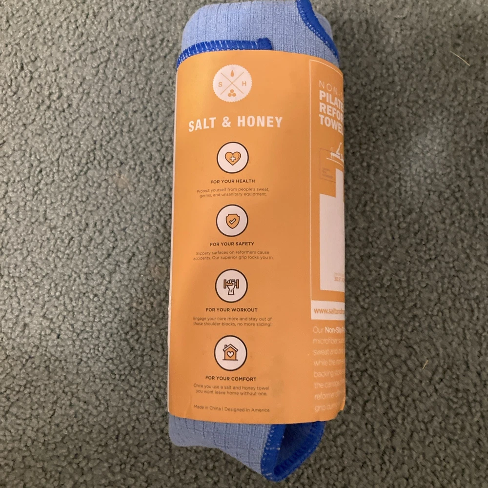 Details: Brand: Salt & Honey Model: Pilates Reformer Towel Condition: New Dimensions: 30.5'' x 23'' Material: 85% Rubber, 15% Polyester Color: Blue