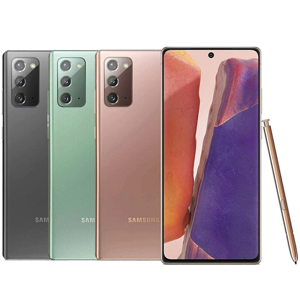 Samsung Galaxy Note 20 5G: DISPLAY Type: Super AMOLED Plus, HDR10+ Size : 6.7 inches Resolution: 1080 x 2400 pixels, 20:9 ratio (~393 ppi density) OS: Android Internal: 128GB 8GB RAM Loudspeaker : Yes, with stereo speakers 3.5mm jack: No Positioning: GPS, GLONASS, BDS, GALILEO NFC: Yes Radio: FM radio (Snapdragon model only; market/operator dependent) USB: USB Type-C 3.2, OTG FEATURES: Fingerprint (under display, ultrasonic), accelerometer, gyro, proximity, compass, barometer NEW Samsung Galaxy Note 20 5G SM-N981U 8+128GB Unlocked Verizon AT&T T-Mobile NEW Samsung Galaxy Note 20 5G SM-N981U 8+128GB Unlocked Verizon AT&T T-Mobile *Unlocked for all GSM and CDMA carriers, including AT&T, T-Mobile, Verizon, MetroPCS, Straight Talk,etc. *Package Include: 1x Smartphone 1x Charger 1x USB Cable 1x Headset 1x Manual Description: NETWORK Technology GSM / CDMA / HSPA / EVDO / LTE / 5G 2G bands GSM 850 / 900 / 1800 / 1900 - SIM 1 & SIM 2 (dual-SIM model only) CDMA 800 / 1900 3G bands HSDPA 850 / 900 / 1700(AWS) / 1900 / 2100 CDMA2000 1xEV-DO 4G bands 1, 2, 3, 4, 5, 7, 8, 12, 13, 14, 18, 19, 20, 25, 26, 28, 29, 30, 38, 39, 40, 41, 46, 48, 66, 71 5G bands 2, 5, 41, 66, 71, 260, 261 SA/NSA/Sub6/mmWave BODY Dimensions 161.6 x 75.2 x 8.3 mm (6.36 x 2.96 x 0.33 in) Weight 192 g (Sub6 5G), 194 g (mmWave 5G) (6.77 oz) Build Glass front (Gorilla Glass 5), plastic back SIM Nano-SIM DISPLAY Type Super AMOLED Plus, HDR10+ Size 6.7 inches, 108.4 cm2 (~89.2% screen-to-body ratio) Resolution 1080 x 2400 pixels, 20:9 ratio (~393 ppi density) PLATFORM OS Android Chipset Qualcomm SM8250 Snapdragon 865 5G+ (7 nm+) CPU Octa-core (1x3.0 GHz Kryo 585 & 3x2.42 GHz Cortex-A77 & 4x1.80 GHz Cortex-A55) GPU Adreno 650 MEMORY Card slot No Internal 128GB 8GB RAM UFS 3.0 MAIN CAMERA Triple 12 MP, f/1.8, 26mm (wide), 1/1.76", 1.8µm, Dual Pixel PDAF, OIS 64 MP, f/2.0, 27mm (telephoto), 1/1.72", 0.8µm, PDAF, OIS, 3x hybrid zoom 12 MP, f/2.2, 120˚, 13mm (ultrawide), 1/2.55", 1.4µm Features LED flash, auto-HDR, panorama Video 8K@24fps, 4K@30/60fps, 1080p@30/60/240fps, 720p@960fps, HDR10+, stereo sound rec., gyro-EIS & OIS SELFIE CAMERA Single 10 MP, f/2.2, 26mm (wide), 1/3.2", 1.22µm, Dual Pixel PDAF Features Dual video call, Auto-HDR Video 4K@30/60fps, 1080p@30fps SOUND Loudspeaker Yes, with stereo speakers 3.5mm jack No COMMS WLAN Wi-Fi 802.11 a/b/g/n/ac/6, dual-band, Wi-Fi Direct Bluetooth 5.0, A2DP, LE, aptX Positioning GPS, GLONASS, BDS, GALILEO NFC Yes Radio FM radio (Snapdragon model only; market/operator dependent) USB USB Type-C 3.2, OTG FEATURES Sensors Fingerprint (under display, ultrasonic), accelerometer, gyro, proximity, compass, barometer Samsung Wireless DeX (desktop experience support) ANT+ BATTERY Type Li-Ion 4300 mAh, non-removable Payment Delivery details Return Contact us Payment -All Buy-It-Now items need to be paid for immediately. -Please make sure your shipping information is correct before paying. -Items will only be shipped to the address confirmed by eBay and the address cannot be changed after shipping. -If you have any questions, please send us a message directly through eBay. Delivery details -Your item will be shipped within 1-3 business days after cleared payment. -It usually arrives within 5-7 business days. -Please feel free to contact us if you have any problems with your order, including late delivery or being lost. We are happy to provide solutions to your inquiries. Return -Our return policy is 30 days from the date of receipt. -If you have any problems with the item, please contact us within 30 days of receipt. -The screen lock or Google ID lock on the phone needs to be cleared before returning the item. Contact us -If you have any questions, please feel free to leave us a message. -Our professional customer service responds to messages within 24 working hours. -If you are not satisfied with your purchase for any reason, please contact us via eBay message before leaving feedback and we will help you.