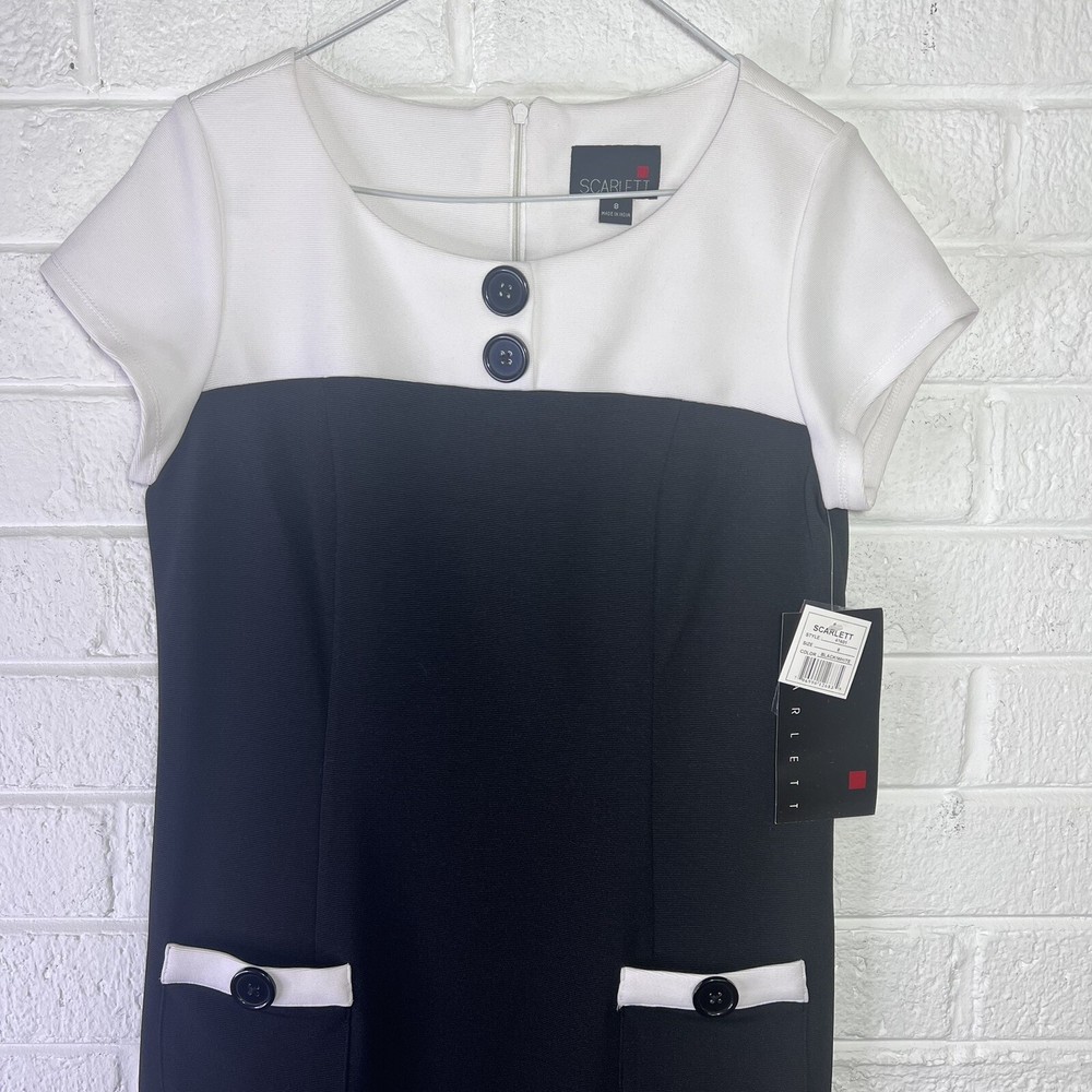 NEW Scarlett Women's Dress Black & White short sleeve, Size 8 Style 41601. Measurments Arm pit to armpit : 17.5” Waist : 16.5 Length : 38” New with tags!! PBAG#1