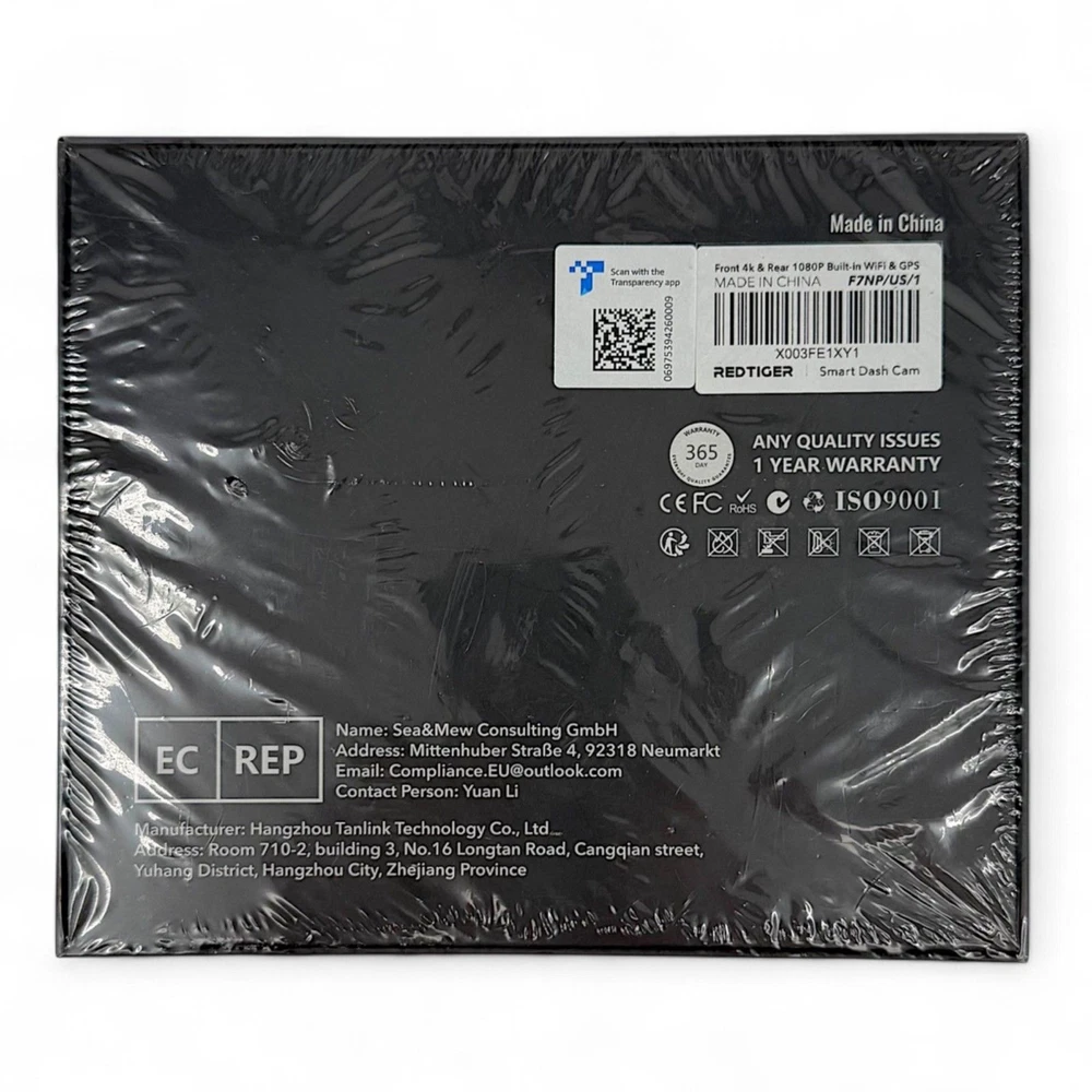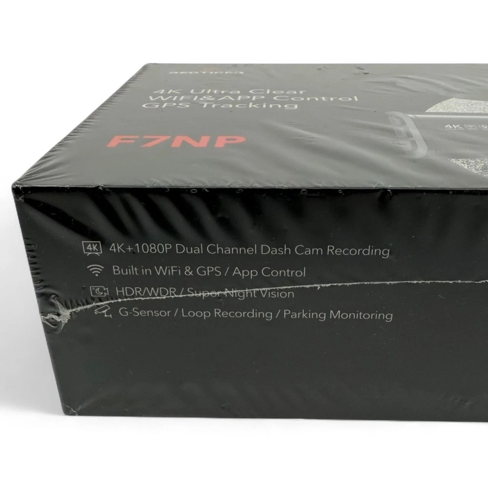 Brand new sealed 4K lens security camera Capture all clear images, including license plates, road signs and conditions Automatically adjusts the night recording 24/7 Parking Monitoring G-Sensor Emergency Recording Instantly Share & App Control Real Time GPS Playback Extreme Weather Adaptation NEW Sealed REDTIGER F7NP Front & Rear Smart Dash Cam 4K Ultra Clear WIFI & GPS