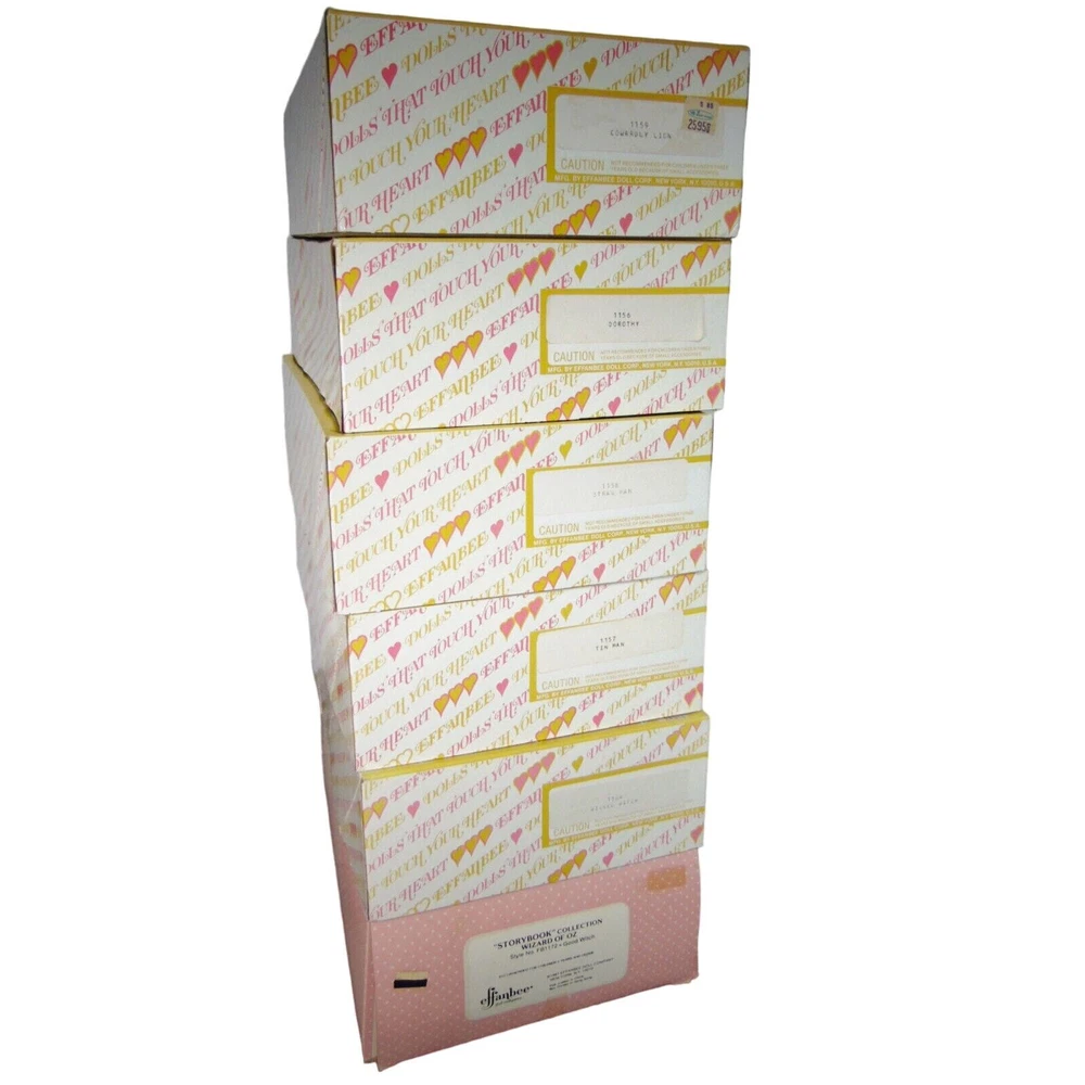You Are Looking To Buy: NEW Vintage 1984-1985 Set of (6) Effanbee Large 11" WIZARD OF OZ DOLLS Dorothy, Glinda The Good Witch, The Wicked Witch, Cowardly Lion, The Tin Man & Scarecrow - NEW IN BOX! Details: This Set Of Wizard Of Oz Classic Effanbee Doll Set Is Complete With (6) Dolls In Original Boxes With Tags +Toto Dog And Basket! Set Includes The Following Effanbee Dolls: #1156 Dorothy With Toto Figurine, Basket, Hang Tag, Box #1157 Tin Man, Oil Can, Ax, Hang Tag, Box #1158 Straw Man 'Scarecrow', Hang Tag, Box #1159 Cowardly Lion, Hang Tag, Box #1169 Wicked Witch, Hang Tag, Box Storybook Glinda The Good Witch, Wand, Hang Tag, Box Size: Large 11" Tall Dolls All Dolls Are NEW Condition In Original Boxes With Tags! Great Gift for Him or Her - or For Yourself! Buy In Confidence From 100% Positive Feedback Seller Thank You! We will ship your order immediately upon receipt of payment. For your convenience, we do combine shipping and often discounts on multiple item orders to same address. Please Come Back To Shop And Buy Again!