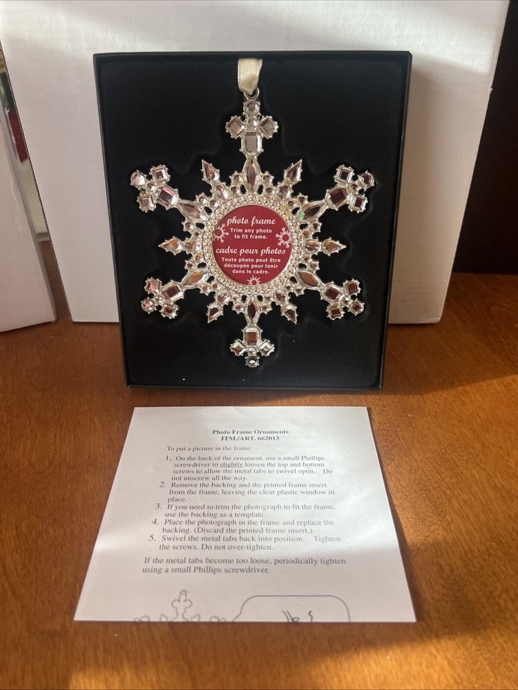 NEW Silver Plated JEWELED Photo Frame CHRISTMAS 5" Snowflake Ornament