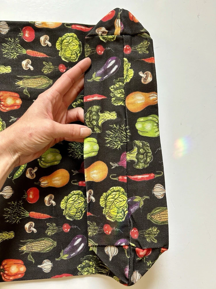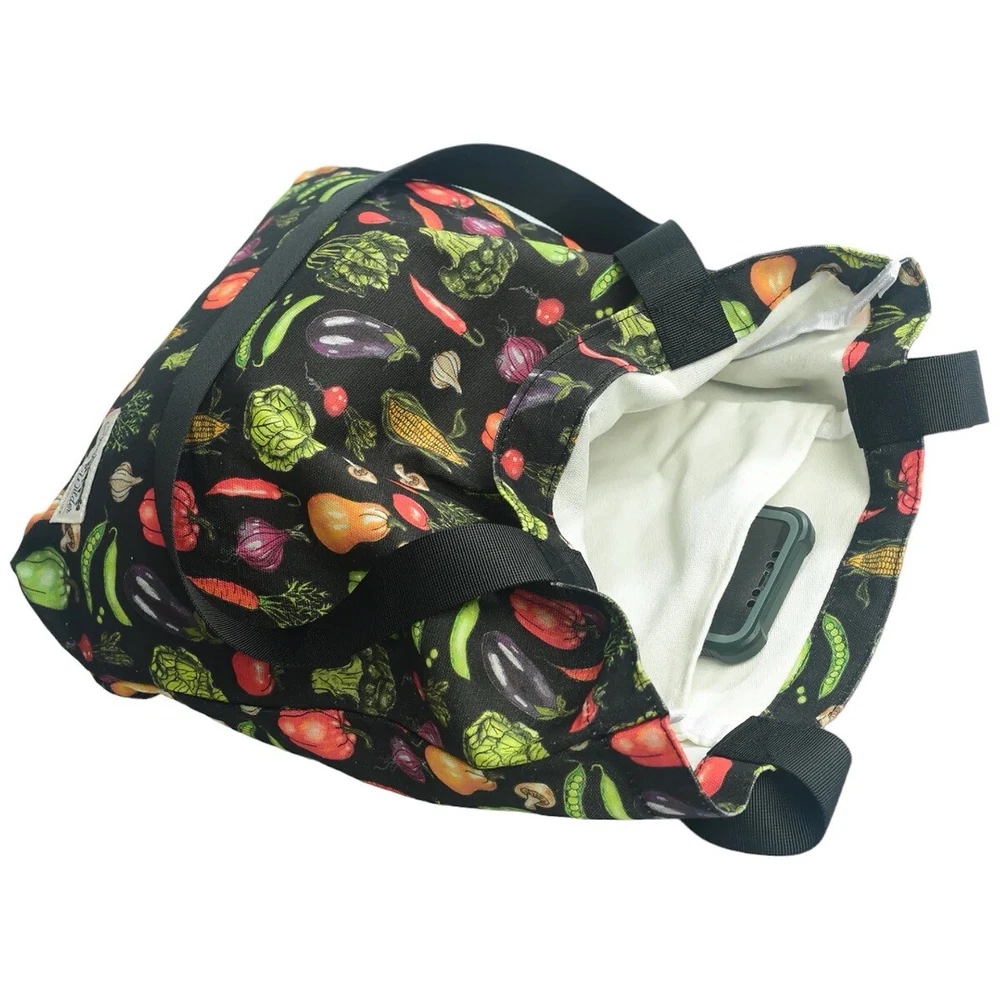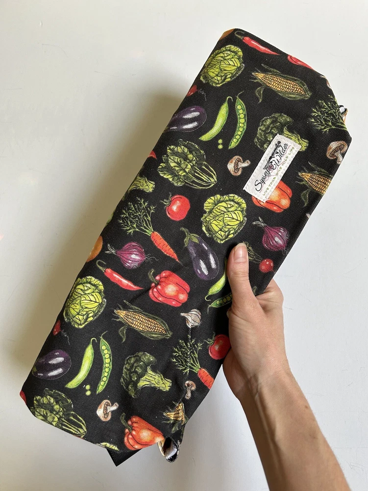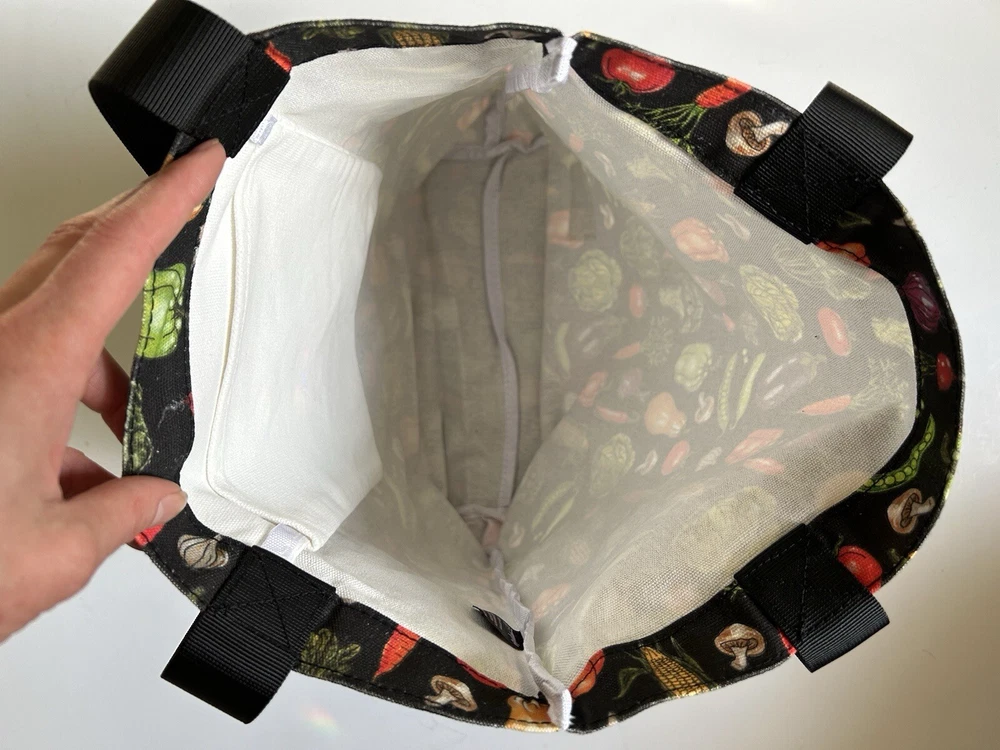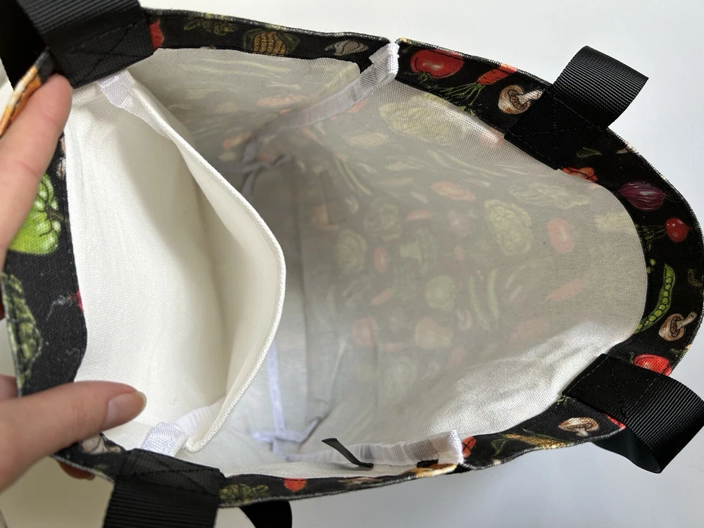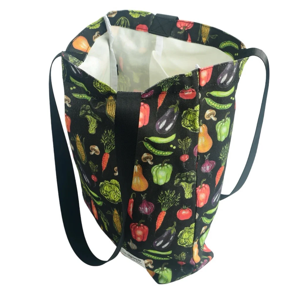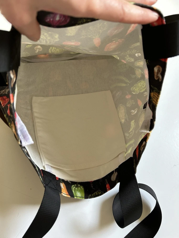 This fantastic tote bag from Sipsey Wilder—a woman-owned, eco-conscious small business from Tuscaloosa, Alabama—is in perfect, brand new condition, with tags. It features adorable “Fresh Veggies” artwork in bright colors over a black background. I love the overall effect of all this produce over black! I also love how sturdy and spacious this bag is! It’s seriously roomy and capable of holding a LOT of stuff! Tote measures 15"H x 15"W x 4"D Double handles Handle drop measures 13 in Limited Edition. From Sipsey Wilder: A healthy harvest of bright and delicious vegetables pop on a black background. Commit to plastic-free shopping! Adorable reusable shopping bags in eye-catching prints! Includes gusseted structure and an inner pocket for your personal items! Measures 15" x 15" x 4" with a 13" drop strap Includes open pocket inside for personal items or small items. Gusseted structure Cotton Canvas