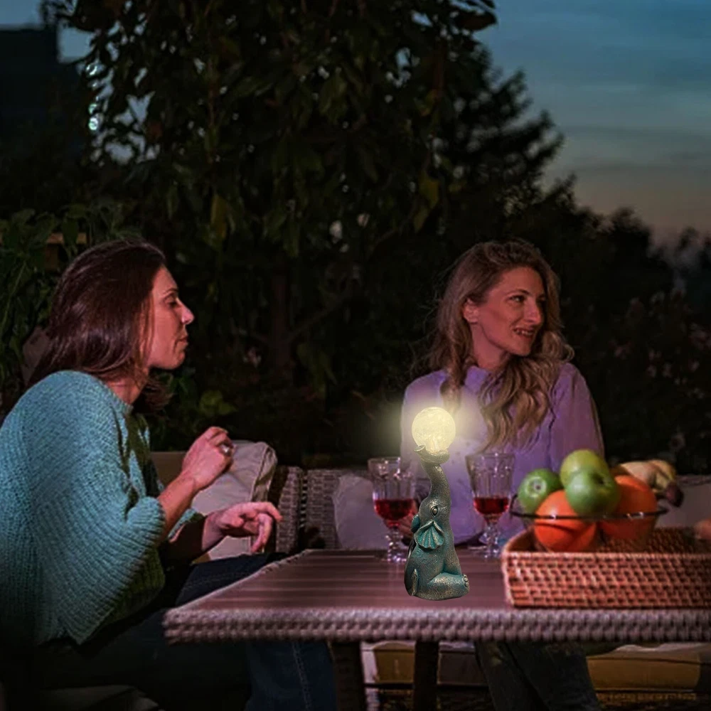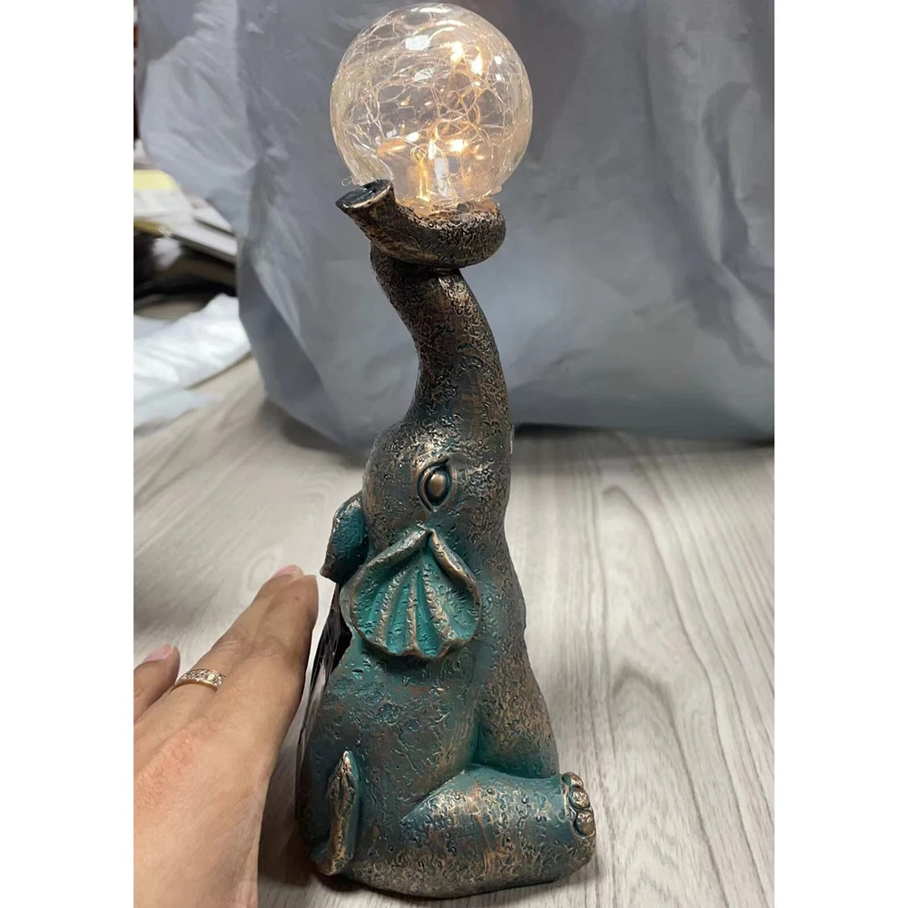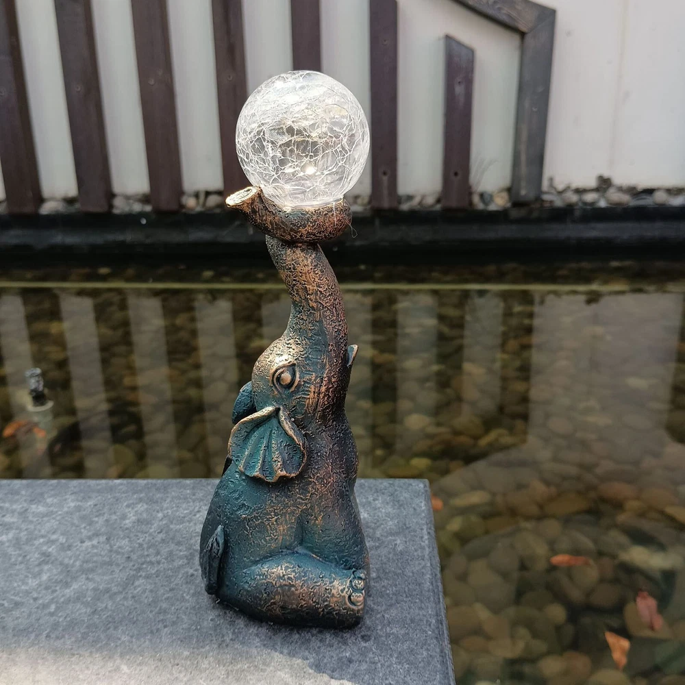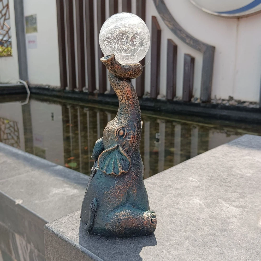 Features: Charming and Eye-Catching : The Garden Decor Outdoor Elephant Statue with Glass Top Solar Figurine is a delightful addition to your outdoor space. Featuring an adorable elephant design and a glass top, it creates a visually appealing ornament that draws immediate attention. Solar-Powered : This figurine includes a built-in solar panel that captures sunlight during the day, powering a soft, enchanting glow at night. The gentle light adds a magical ambiance to your patio or yard, making it a perfect decoration for evening gatherings or moments of relaxation. Durable and Weather-Resistant : Made from high-quality resin, this elephant statue is designed to withstand outdoor conditions. It is resistant to fading, cracking, and chipping, ensuring long-lasting beauty for many seasons. Product size: 8.5 x 7 x 22 cm / 3.35 x 2.76 x 8.66 inches. Versatile Decoration : This charming ornament isn’t just for gardens—it’s ideal for patios, balconies, and yards as well. Its compact size and whimsical design make it a great fit for various outdoor settings, adding a playful and unique touch to your décor. Exceptional Craftsmanship : Each elephant statue is meticulously crafted with attention to detail, showcasing the skill and artistry of the makers. The combination of resin and glass creates a one-of-a-kind piece, bringing personality and character to your outdoor environment. Product Description: Garden Decor Outdoor Statues - Elephant with Glass Top Cute Solar Figurine for Patio, Yard, and Outdoor Art. A perfect addition to any outdoor space, this whimsical elephant ornament features a resin body and glass top, creating a captivating and functional piece. Material : Resin Color : As shown in the picture (Note: Colors may vary slightly due to monitor differences. Please ensure you're okay with this before ordering). Package weight : 302g Package size : 13.5 x 11 x 25 cm (Please allow for 1-3 mm size variation due to manual measurement. Please ensure you are comfortable with this before ordering.)