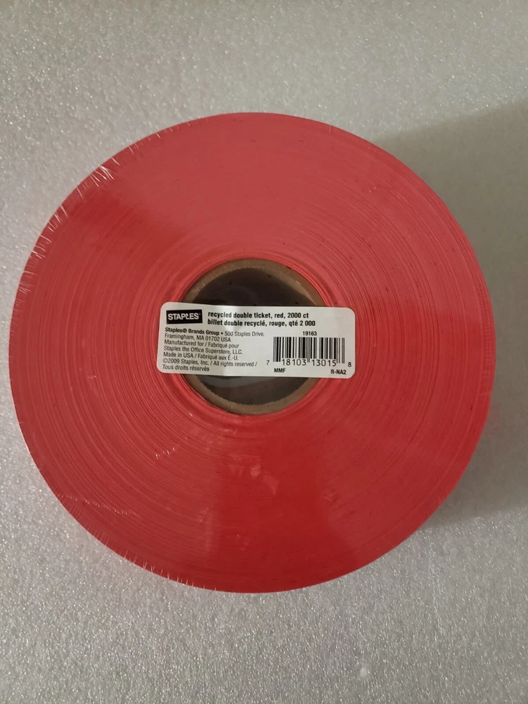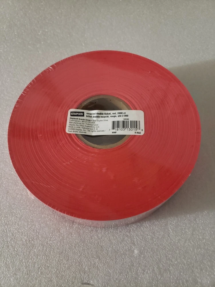 NEW Staples Raffle "KEEP THIS COUPON" Recycled Double Tickets Roll 2000 count