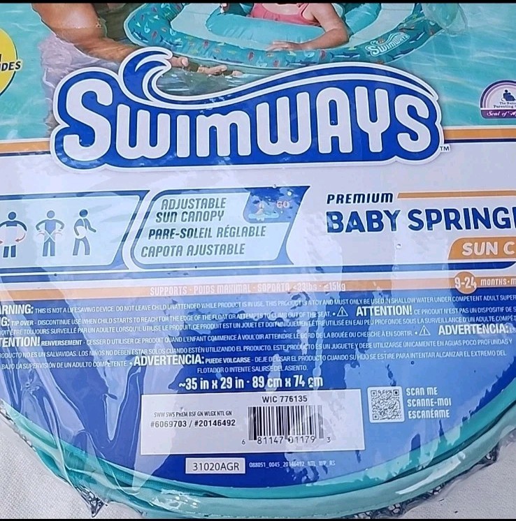 The NEW SwimWays Baby Spring Float with Adjustable Sun Canopy is a colorful and whimsical float designed for babies to enjoy a relaxing time in the water. The adjustable sun canopy provides extra shade and protection, while the sturdy construction ensures safety while in the pool or at the beach. Perfect for introducing babies to the pleasures of being in the water, this Spring Float from SwimWays is a fun and stylish addition to any outdoor toy collection.
