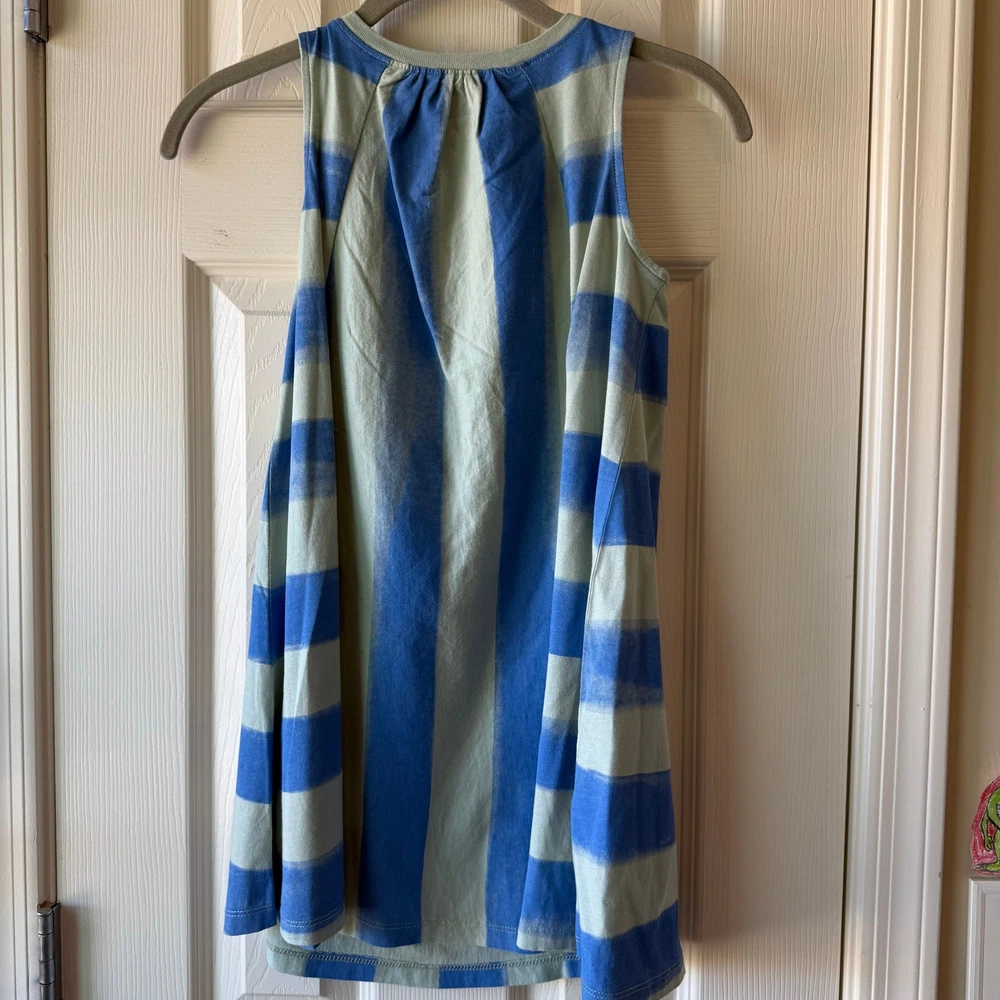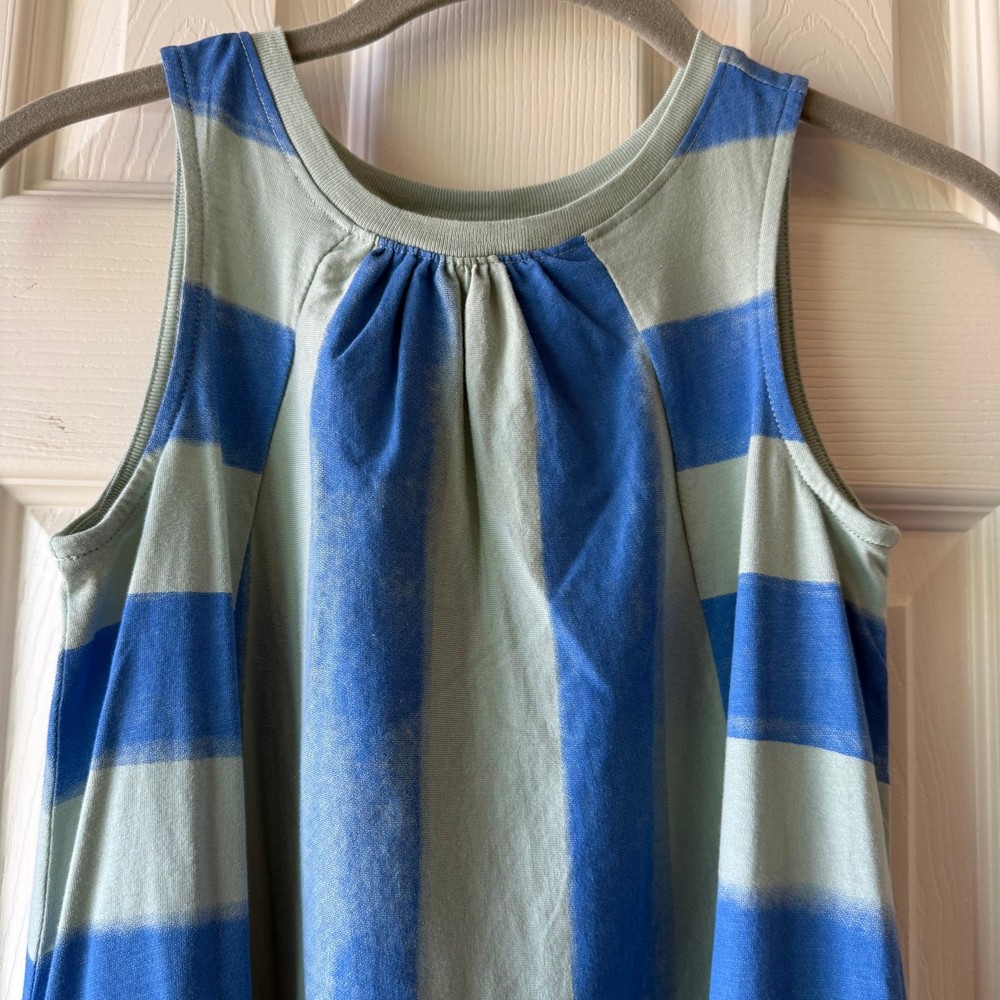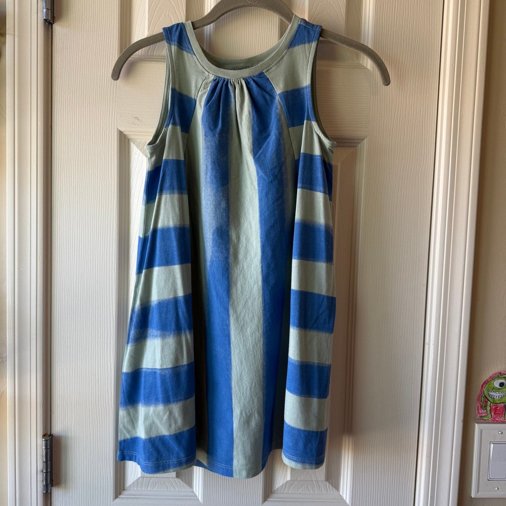 Girls size 7, Tea Collection, blue striped Trapeze dress. 100% cotton jersey. No flaws. New with tags still attached. P-4656