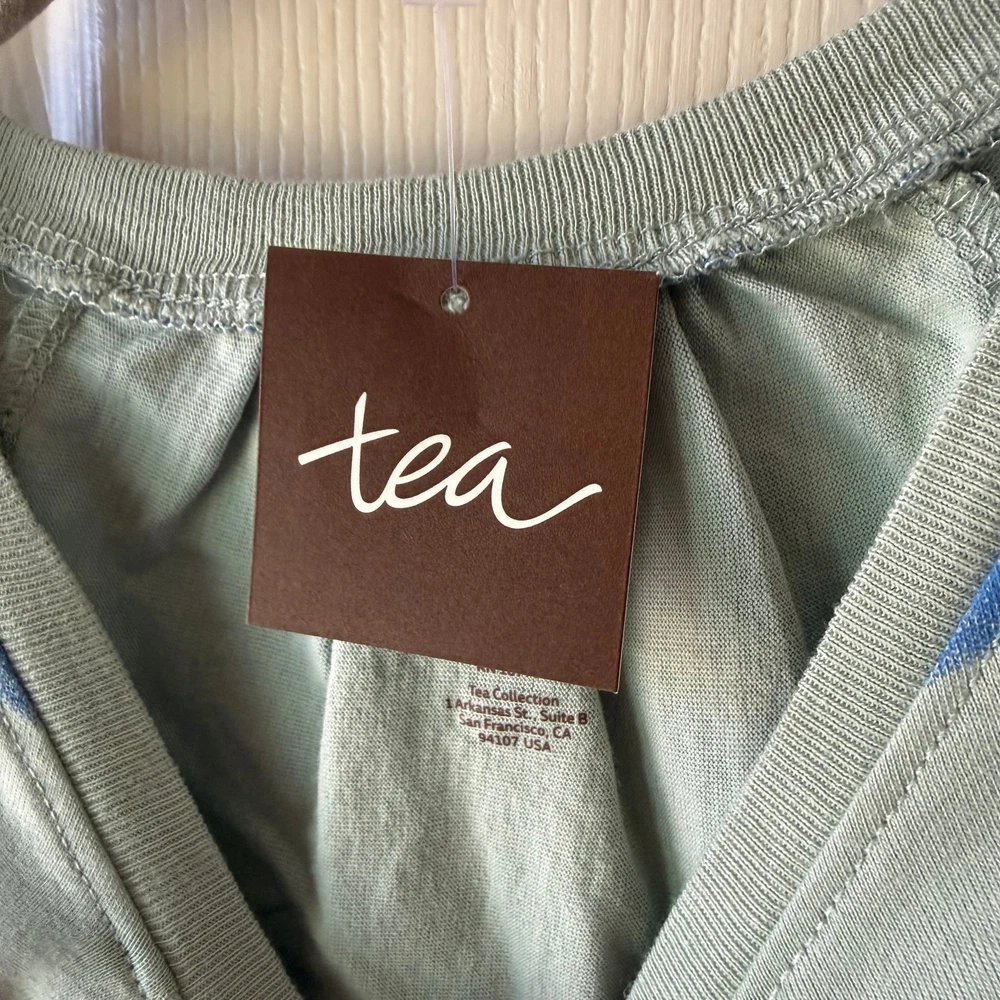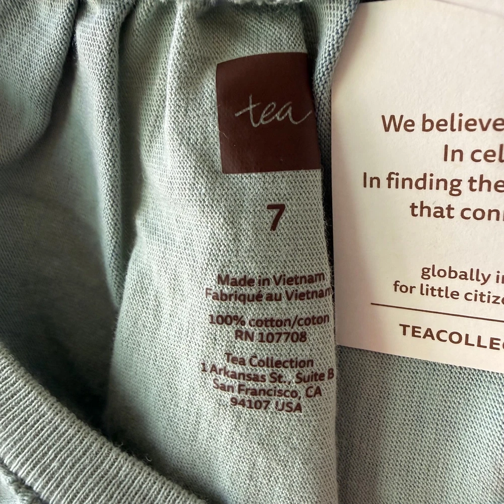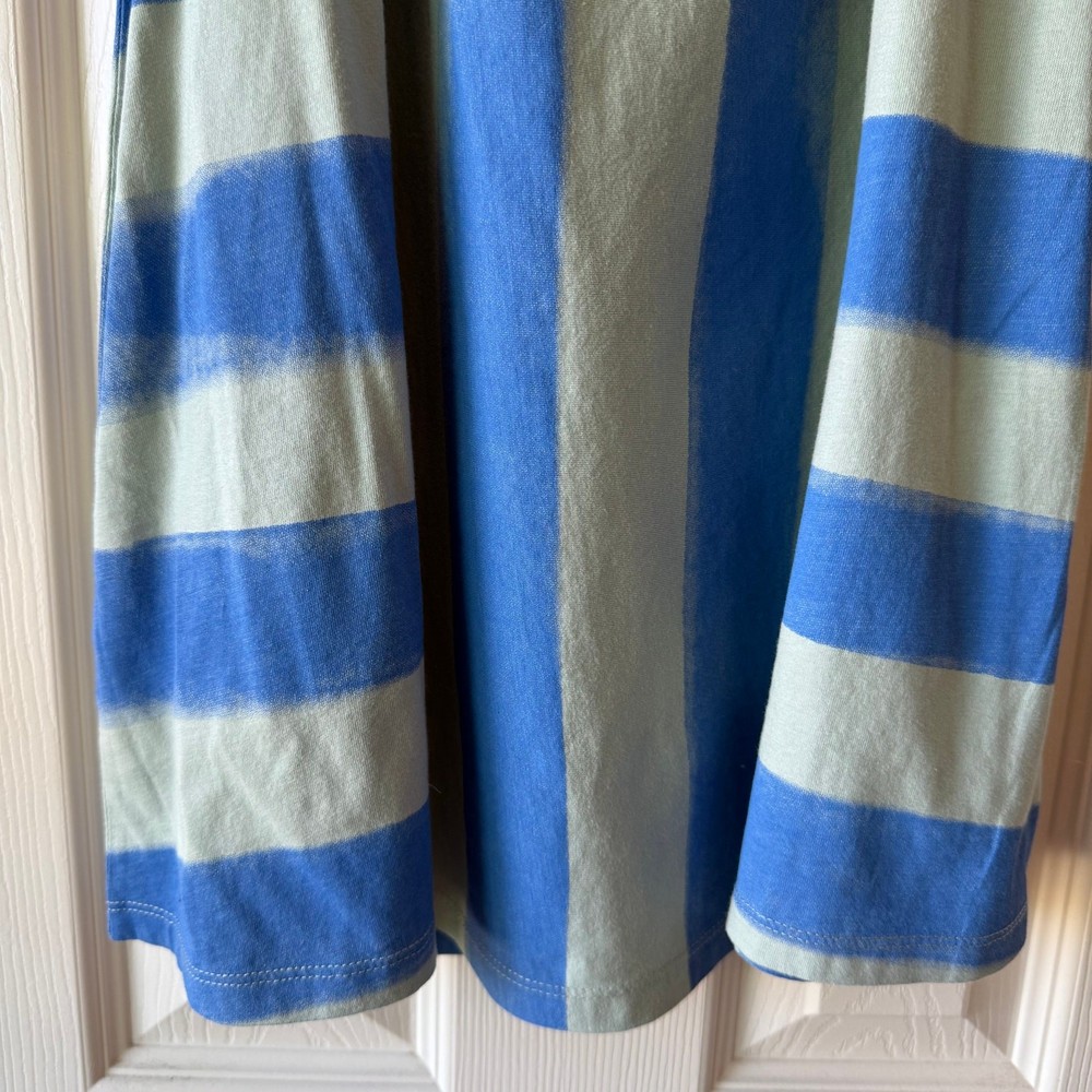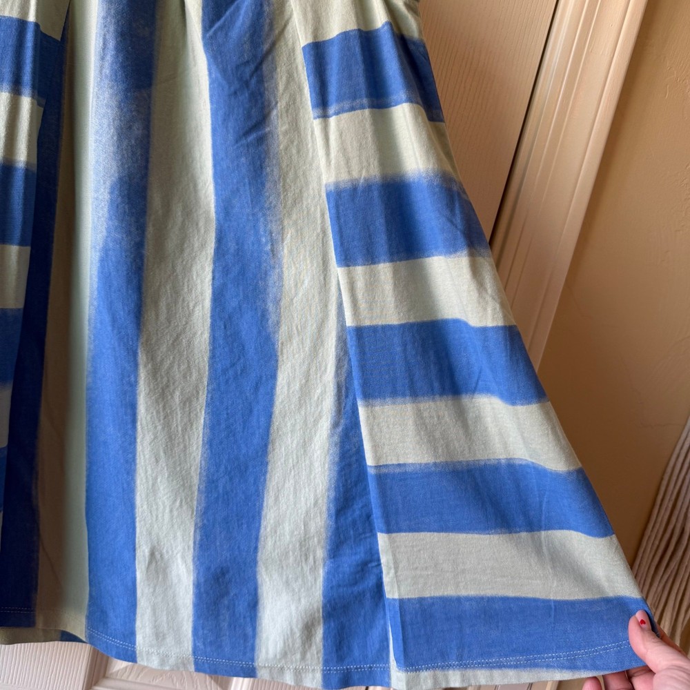 Girls size 7, Tea Collection, blue striped Trapeze dress. 100% cotton jersey. No flaws. New with tags still attached. P-4656
