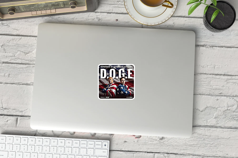 Show your support for bold leadership and innovative governance with this unique "D.O.G.E" sticker, featuring Donald Trump and Elon Musk draped in American flags. Representing the “Department of Government Efficiency,” this sticker is a playful nod to patriotism and visionary ideas. Perfect for Trump and Musk supporters alike, this vinyl decal makes a strong statement on laptops, notebooks, and other smooth surfaces. Key Features: Distinctive "D.O.G.E" Design – Featuring Trump and Musk in patriotic attire, symbolizing efficiency and bold governance. High-Quality Vinyl Material – Ideal for indoor use; not recommended for extended outdoor exposure or UV light. Easy Application & Clean Removal – Sticks securely to most surfaces and removes without leaving residue. Great for Collectors & Fans – A unique piece for supporters of Trump, Musk, and efficient government ideals. Make a statement with this patriotic and visionary "D.O.G.E" sticker, celebrating a blend of bold leadership and innovative thinking. Perfect for those who admire Trump and Musk’s commitment to America and efficiency!
