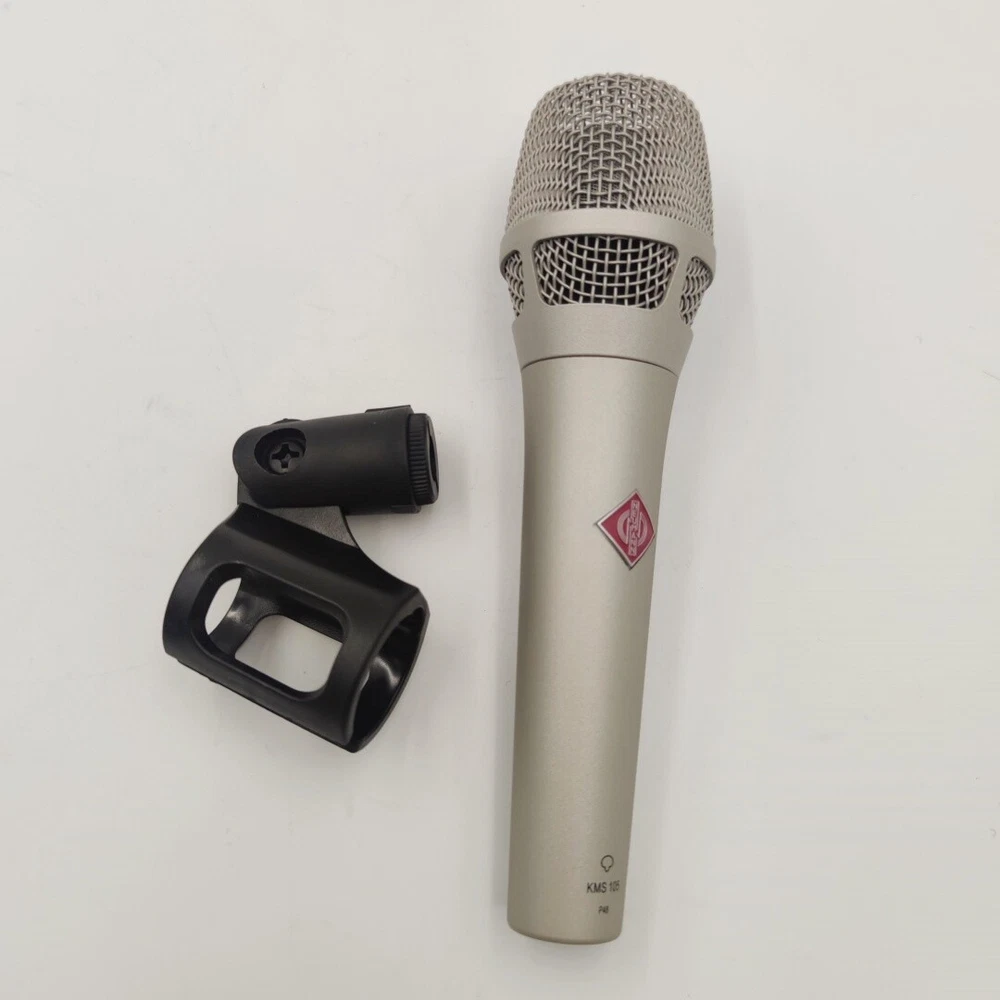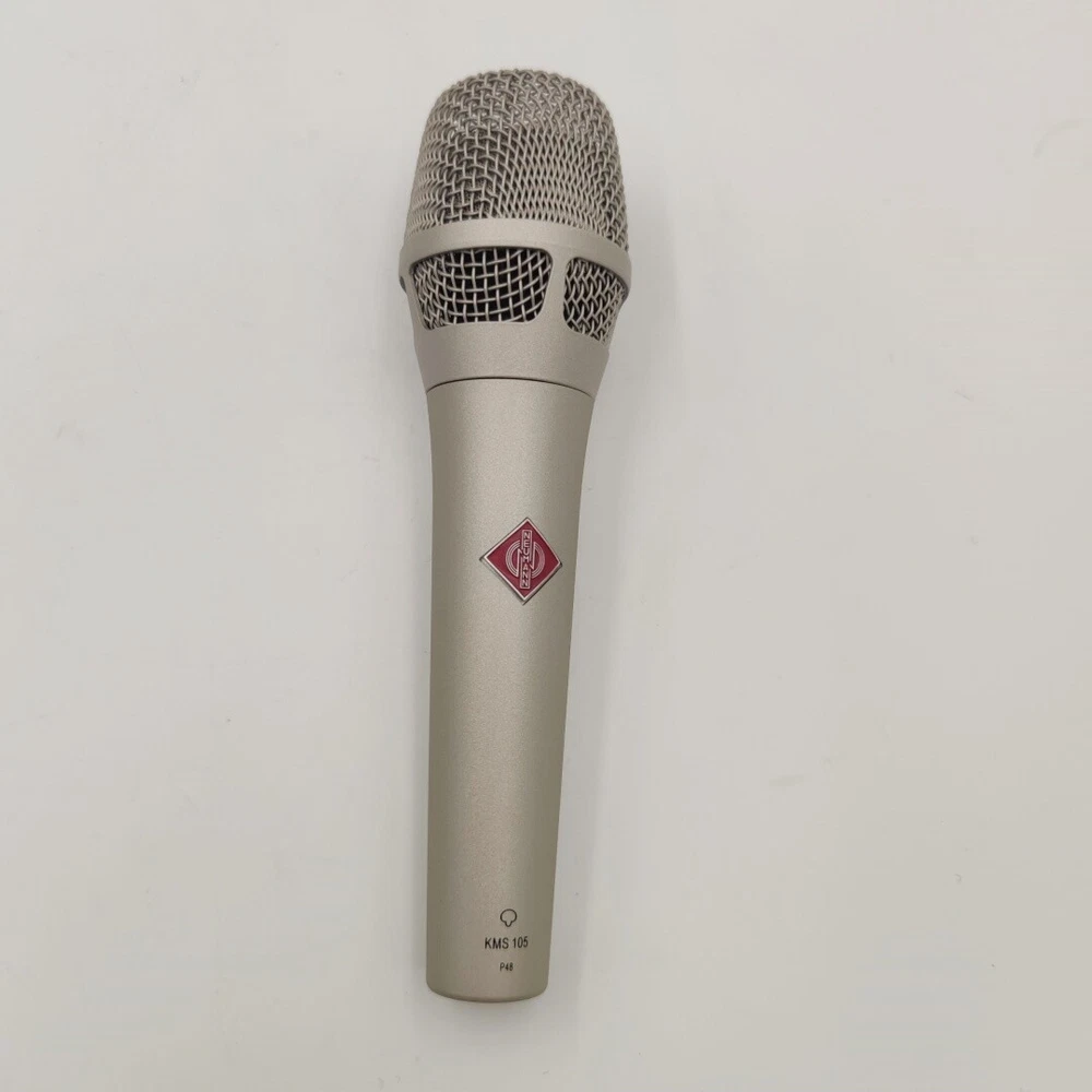 Neumann KMS 105 Supercardioid Condenser Handheld Vocal Microphone KMS 105 Studio grade stage microphone for vocalists. Supercardioid pickup pattern. Supercardioid pattern with excellent feedback rejection Studio quality condenser capsule Transparent sound with a gentle treble lift Highly effective, foam-free pop filter NEUMANN SOUND ON STAGE The KMS 105 is a studio grade vocal microphone for stage use. Its precision manufactured condenser capsule offers true Neumann sound quality, combined with all the virtues of a rugged stage microphone: excellent pop protection, low handling noise, enormous SPL capability, and high feedback resistance, thanks to its tight supercardioid pattern. STUDIO QUALITY FOR STAGE VOCALS The KMS 105 brings studio sound quality to the stage. Unlike usual stage microphones, which use dynamic capsules, the KMS 105 is equipped with a true condenser microphone capsule offering the superior clarity that made Neumann studio microphones famous all over the world. At the same time, the KMS 105 possesses the ruggedness required of a stage mic, thus refuting the myth that condenser microphones must be “fragile”. The KMS 105 can stand enormous sound pressure levels of up to 150 dB without clipping, and its tight, frequency-independent supercardioid pattern ensures high gain before feedback. The KMS 105 has a much smoother frequency response than dynamic microphones and an airy top-end. Compared to dynamic microphones, the Neumann KMS 105 has a vastly superior transient response resulting in a more immediate, more emotional vocal sound. In practical terms: effortless intelligibility, without the usual EQ boosts – which further improves feedback resistance. As a stage microphone, the KMS 105 is optimized for close miking; a fixed low cut filter compensates for the proximity effect and ensures clear bass, even if the singer’s lips touch the microphone. The headgrille is made of hardened steel and features a carefully designed multi-level pop filter made of wire gauze. Despite its effectiveness, this aco ustic filter does not cause any sibilance problems or compromise the capsule’s directivity. The head amplifier is protected by a thick-walled housing. Its transformerless output minimizes electromagnetic interference, such as hum. Because of its low output impedance of only 50 ohms, the KMS 105 can drive very long cable runs of up to 300 m (1000 ft) without transmission losses. APPLICATIONS The KMS 105 is primarily designed as a handheld vocal microphone but can be used for other stage applications as well, due to its high SPL capability and wide dynamic range. Examples include percussion, saxophone, trumpet, trombone, harmonica, acoustic guitar, and guitar cabinets. Thanks to its superior sound quality, the KMS 105 is also an excellent microphone for home recording and broadcast applications. Because it is optimized for close mic placement, the KMS 105 will pick up a dry sound with very little ambience, which is a big advantage in untreated rooms. Tight supercardioid pattern without off-axis coloration Unaffected by extreme sound pressure levels Rugged construction Feedback resistant Built-in pop screen Very low handling noise Acoustical operating principle : Pressure gradient transducer Directional Pattern : Supercardioid Frequency Range : 20 Hz ... 20 kHz Sensitivity at 1 kHz into 1 kohm : 4.5 mV/Pa ± 1 dB equ. -47 dBV Rated Impedance : 50 ohms Rated load impedance : 1 kohms Equivalent noise level, CCIR¹⁾ : 28 dB Equivalent noise level, A-weighted¹⁾ : 18 dB-A Maximum SPL for THD 0.5%²⁾ : 150 dB Signal-to-noise ratio, CCIR (re. 94 dB SPL)¹⁾ : 66 dB Signal-to-noise ratio, A-weighted (re. 94 dB SPL)¹⁾ : 76 dB Maximum output voltage : 12 dBu Supply voltage (P48, IEC 61938) : 48 V ± 4 V Current consumption (P48, IEC 61938) : 3.5 mA Matching connector : XLR 3 F Weightapprox. 300 g Diameter : 48 mm Length : 180 mm 1) according to IEC 60268-1; CCIR-weighting acccording to CCIR 468-3, quasi peak; A-weighting according to IEC 61672-1, RMS 2) measured as equivalent el. input signal