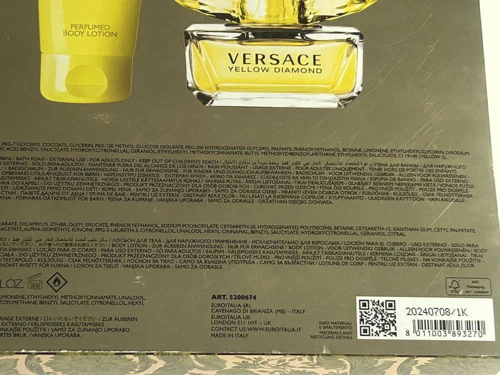 Brand New Versace 3 pc Set Yellow Diamond 1 Perfumed Shower Gel 1.7 fl oz 2 Perfumed body Lotion 1.7 fl oz 3. Eau De Toilette - Natural Spray 1.7 fl oz
