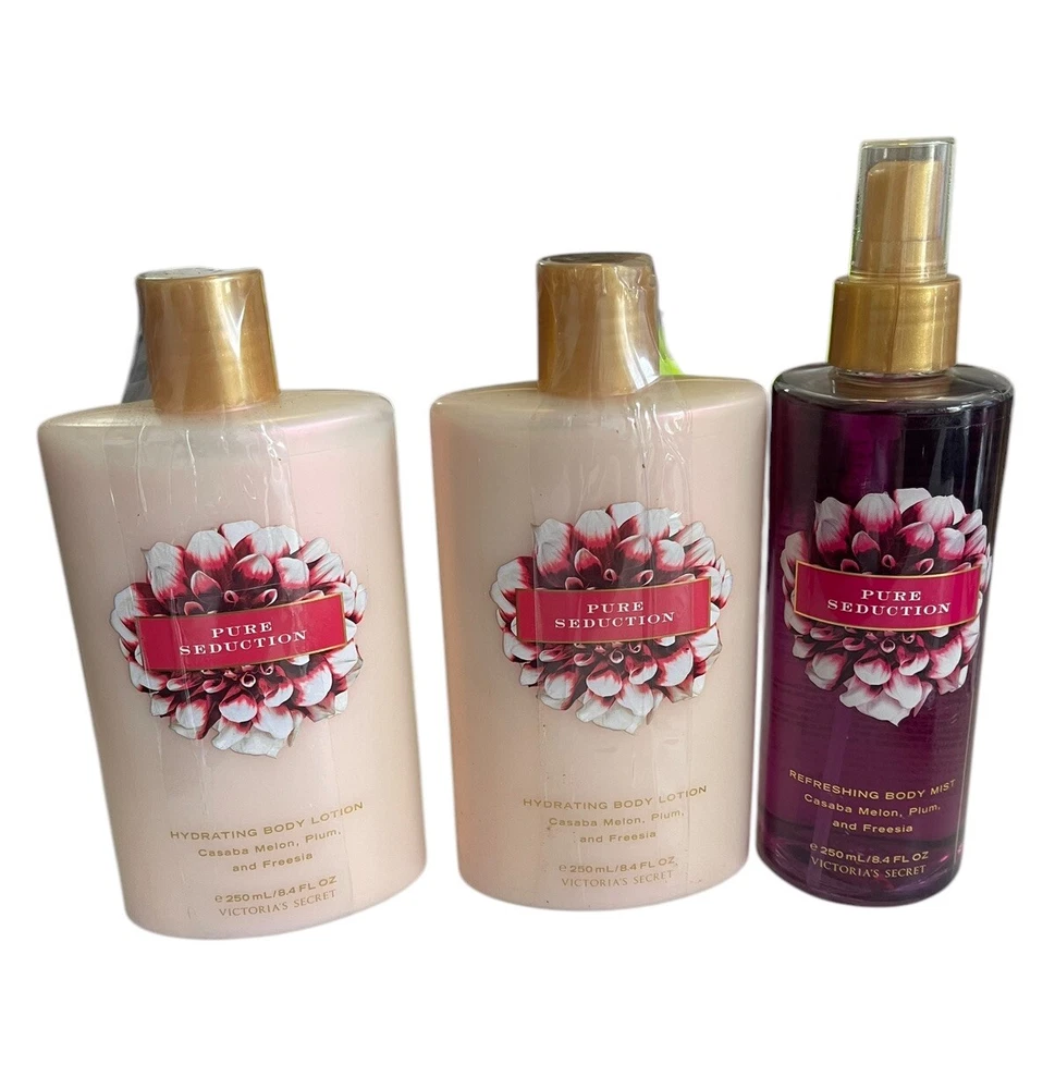 New - Victoria’s Secret Pure Seduction 2 Hydrating Body Lotion + 1 Body Mist - All are new and full size 8.4 fl oz.