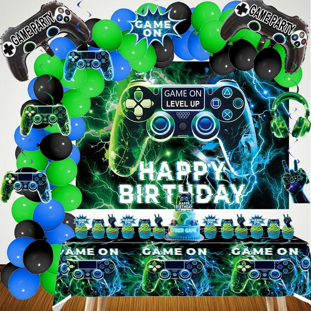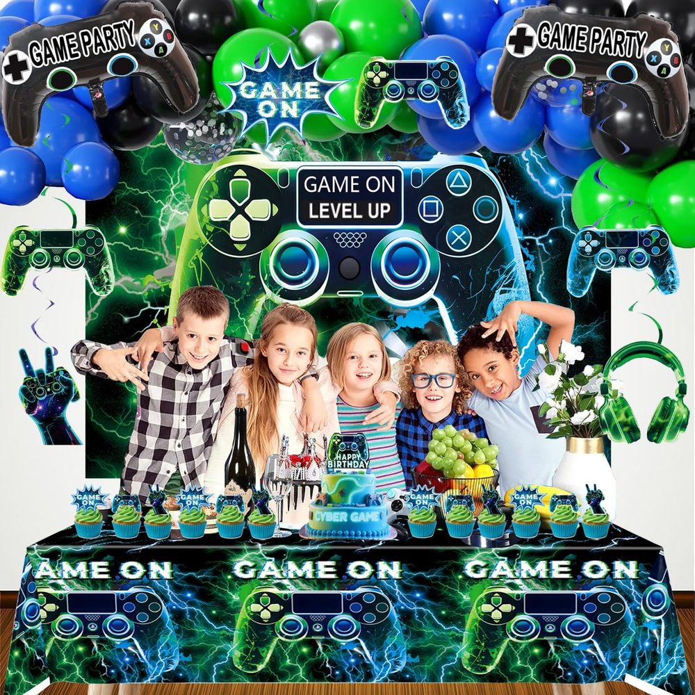 Store New Arrivals Add to Favorite View Feedback Contact Fast deliveries to the customer's home Quality customer service John Make the customers happy! NEW Video Game on Theme Party Supplies Sett: Decorations with Happy Birthday Gaming Backdrop, Game Table Covers ,Hanging Swirls , Cake Topper, Foil Gamer Balloons, Multi-Color Balloons Description [Great Value Pack:]:Friends or family love gaming? This is the perfect set for your party, both kids and adults would love it if you are fans of video game on! Wow your guests or family and create exciting atmosphere in the minute they see it! Use banners and balloons to decorate the party, use them to make backdrop or photo booth, bring unforgettable moments and beautiful memories! [Great Value Pack:]:Complete Gaming Party Set: Elevate your gaming-themed party with our all-in-one pack! Includes a reusable backdrop, waterproof PE plastic table cover, 6set Hanging Swirls,45 latex balloons in dark blue, black, and green, 2 video game controller-shaped foil balloons, and 13 durable cake toppers. [Great Value Pack:] – The non-toxic backdrop is foldable and fade-resistant. The thick PE table cover wipes clean for reuse. cake toppers withstand repeated use, and foil balloons hold helium for 48+ hours. [Great Value Pack:] – Four reinforced metal grommets on the backdrop allow easy hanging on walls, doors, or stages using ropes or hooks. Pre-inflated balloons include quick-seal strips – no tools required. [Great Value Pack:] – Reuse the backdrop, table cover, and cake toppers for multiple events. High-quality materials save costs compared to single-use decorations. Product description Item model number video game party-02 Color Blue , Green Pattern video game Product Dimensions 0.1 x 0.1 x 0.1 inches Material paper, plastic Shape video game Item Weight 10.2 ounces Theme Video Game Manufacturer recommended age 1 month and up Occasion birthday Included Components function(f) {var _np=(window.P._namespace("DetailPageProductOverviewTemplatesJava"));if(_np.guardFatal){_np.guardFatal(f)(_np);}else{f(_np);}}(function(P) { P.when('A').execute(function(A){ A.on('a:truncate:po-attribute-truncate-2:updated', function(data) { var isTruncated = !data.truncateInstance.getIfTextFits(); var seeMoreElement = document.getElementById('po-attribute-see-more-id-2'); if(seeMoreElement) { seeMoreElement.style.display = isTruncated ? '' : 'none'; } }) }); })); Elevate your gaming-themed party with our all-in-one pack! Includes a reusable backdrop, waterproof PE plastic table cover, 45 latex balloons in dark blue, black, and green , 6set Hanging Swirls . 2 video game controller-shaped foil balloons, and 13pcs durable cake toppers. See more ABOUT US We offer the best prices around on high quality products. Our E-store includes media such as books, movies, music and games while offering electronics, toys, sporting apparel, clothing, tools, general home, garden items and more. SHIPPING We are always working hard to ensure your package arrives as soon as possible. Please understand that some factors like weather, high postal traffic, and the performance of shipping companies are outside of our control. We offer free shipping to the lower 48 states and ship within 2 business days of payment, usually sooner. We do not accept P.O. Boxes. Please provide a physical address. For shipping outside of the continental USA, we only use eBay's Global Shipping Program. The item is shipped to KY and then sent to the rest of the world. International customers are responsible for all duties and taxes. Continue to 'check out' to calculate costs for shipping the item to your country. Messages regarding eBay's Global Shipping Program MUST be directed at eBay EXCLUSIVELY. RETURNS We offer a 30-Day Return Policy on items in which you are not completely satisfied with. You have the option of a full-refund or an exchange of the item. No returns are available on items shipped outside of the USA PAYMENT We accept PayPal. CONTACT US This page content is yet to come Please ad us to your favorite seller and visit again later Thank You CUSTOMER SATISFACTION We try our very best to make sure every customer is completely satisfied. If there's a problem, message us! We're happy to help. WE ACCEPT