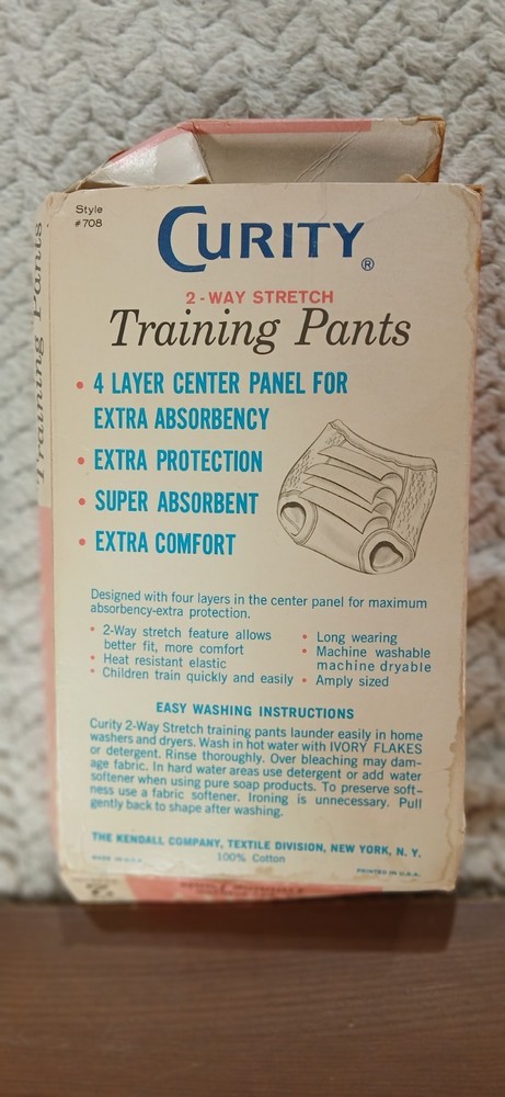 They are new never used but have collected dust over the past 50 years. The product is a new vintage box of 2 Kemdall Curity 2-Way Stretch Cotton Baby Training Pants. Made by the brand Curity, these baby training pants are designed to provide comfort and flexibility for your little one while transitioning from diapers to underwear. The 2-way stretch cotton material allows for easy movement and breathability, making it ideal for keeping your baby dry and comfortable during the training process.