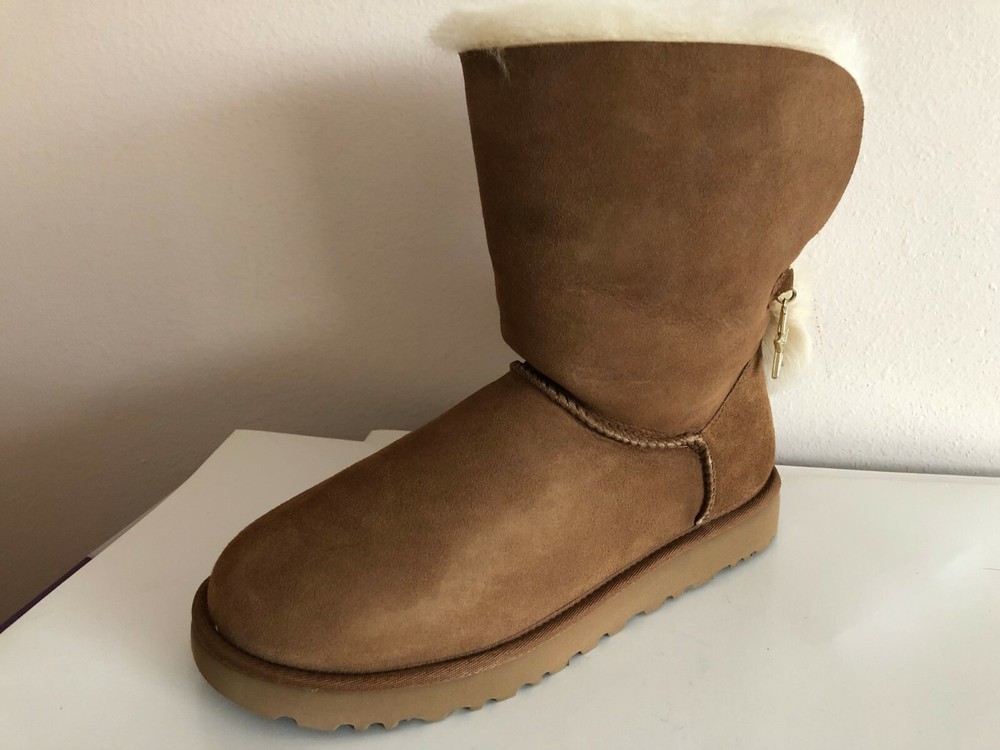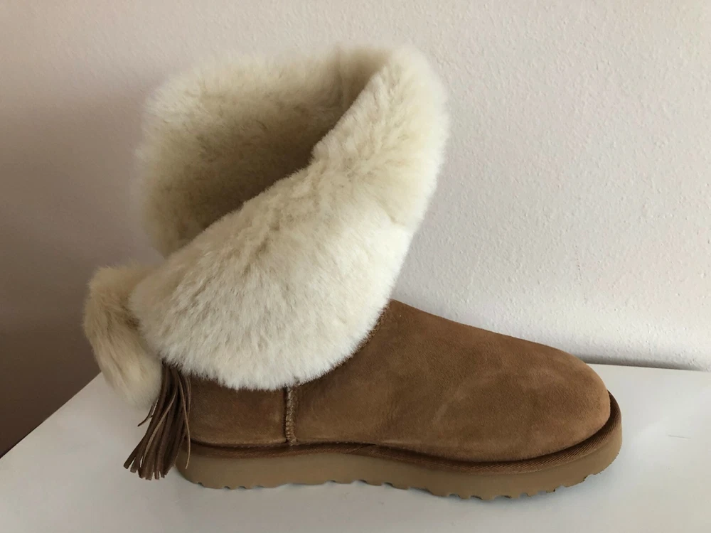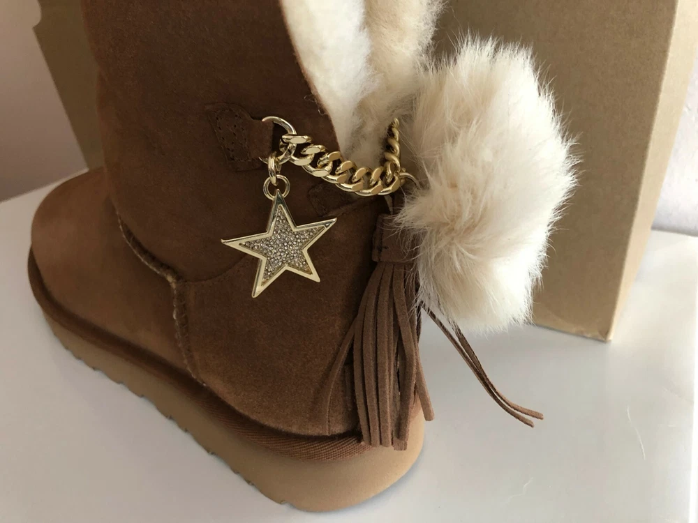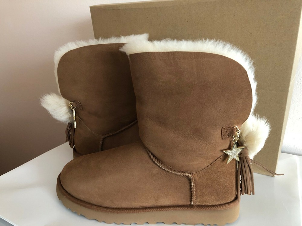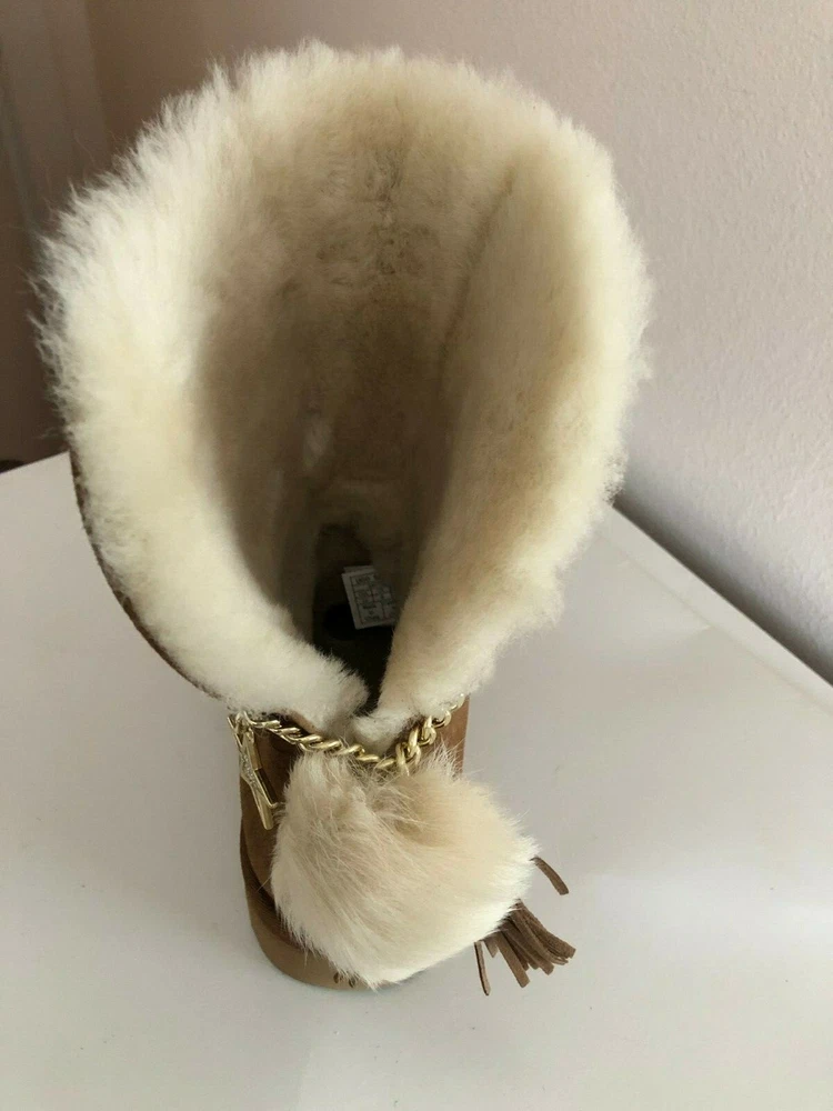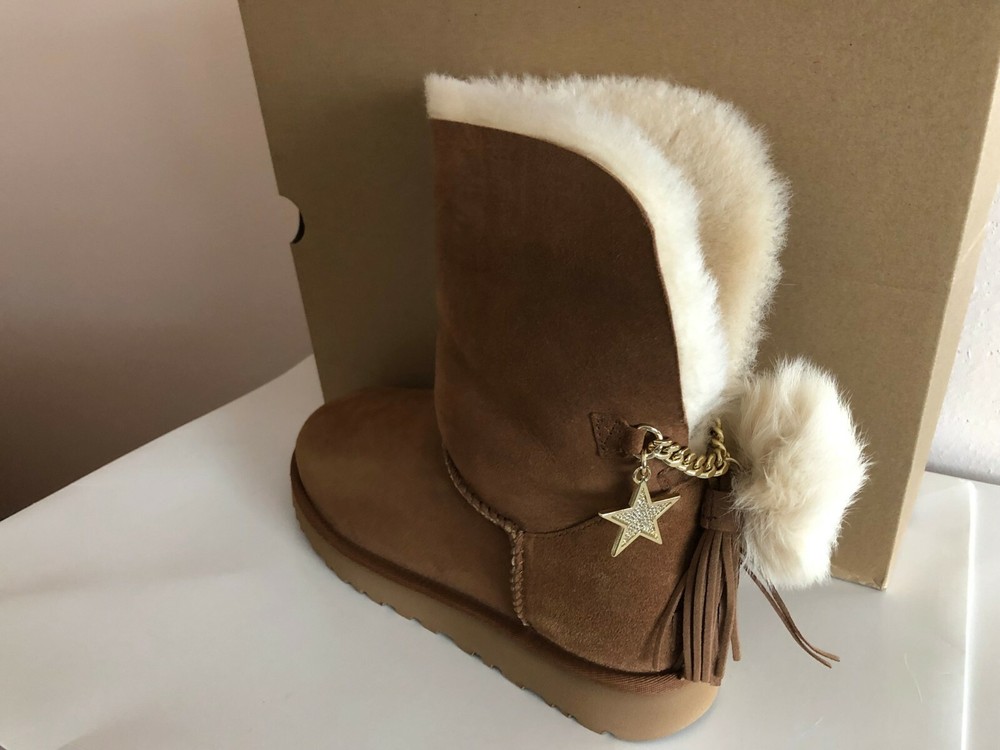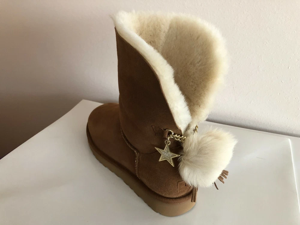 INVENTORY CLEARANCE SALE! BRAND NEW IN BOX & 100% AUTHENTIC UGG AUSTRALIA WOMEN'S "CLASSIC CHARM BOOT" SUEDE BOOTS COLORS: Chestnut Sizes available: US 8 / EUR 39, US 9 / EUR 40, US 10 / EUR 41 & US 11 / EUR 42 Give in to casual cool this season with slouchy and sophisticated UGG Classic Charm Boot. Durable suede uppers are pre-treated to be water and stain repellent. Easy pull-on construction. UGG Signature Twinface sheepskin linings are treated on both sides to provide maximum softness and comfort. Genuine sheepskin-lined foam footbed offers comfort and warmth. Treadlite by UGG outsole provides increased traction, durability, cushioning, and flexibility. Imported. This product contains real fur from Sheep or Lamb.Fur Origin: Australia, UK, Ireland or United States. Real Fur has been artificially dyed and treated. Measurements (approx): Heel Height: 1" Shaft: 5" Platform Height: 1⁄2 in Original Retail Price $230+ About UGG: Made famous by the iconic sheepskin boot, UGG® has been elevating standards of comfort and luxury since 1978. Using only premium materials and employing the highest standards of craftsmanship, UGG® creates footwear, apparel, accessories, and home items that feel like nothing else. FLAT RATE SHIPPING CHARGES: USA - $16.99 via Priority Mail (w/ delivery confirmation) THANKS FOR LOOKING AND GOOD LUCK! Shipping We ship to the United States (excluding Alaska) Delivery We generally ship items next day after payment is received. Refunds & Returns All sales are final.