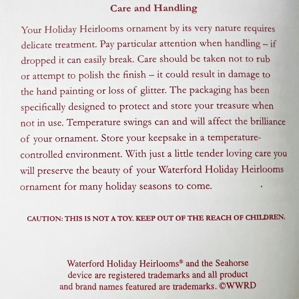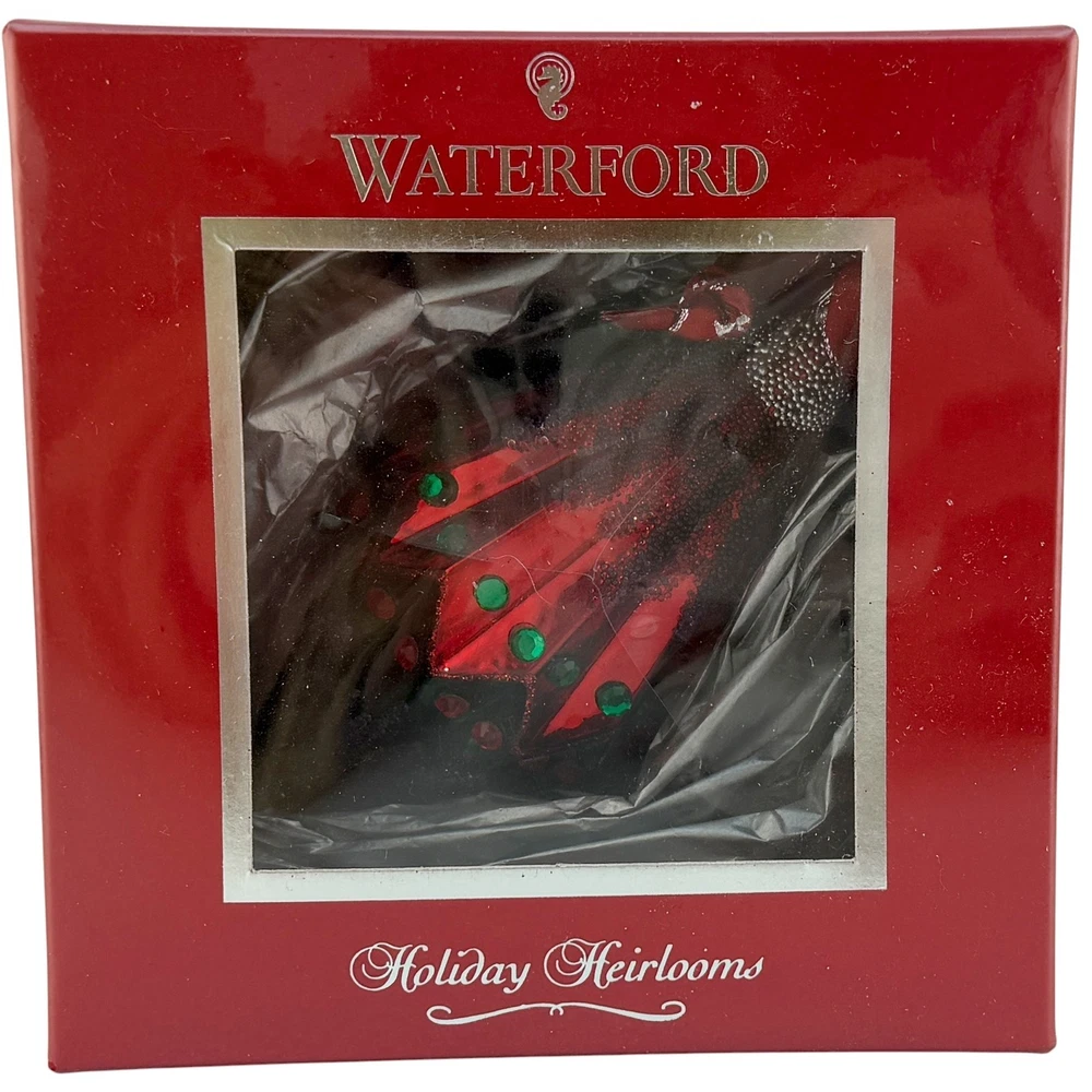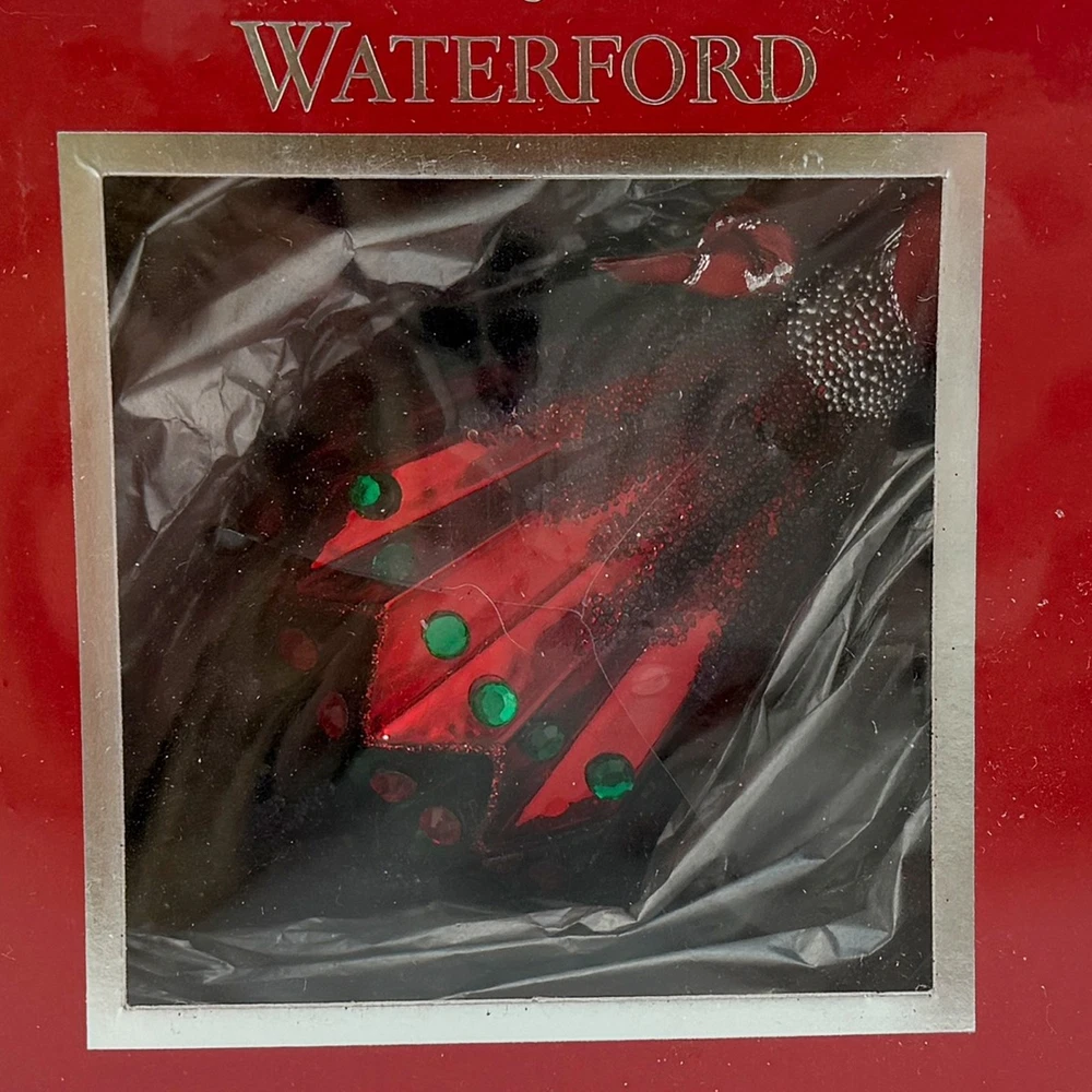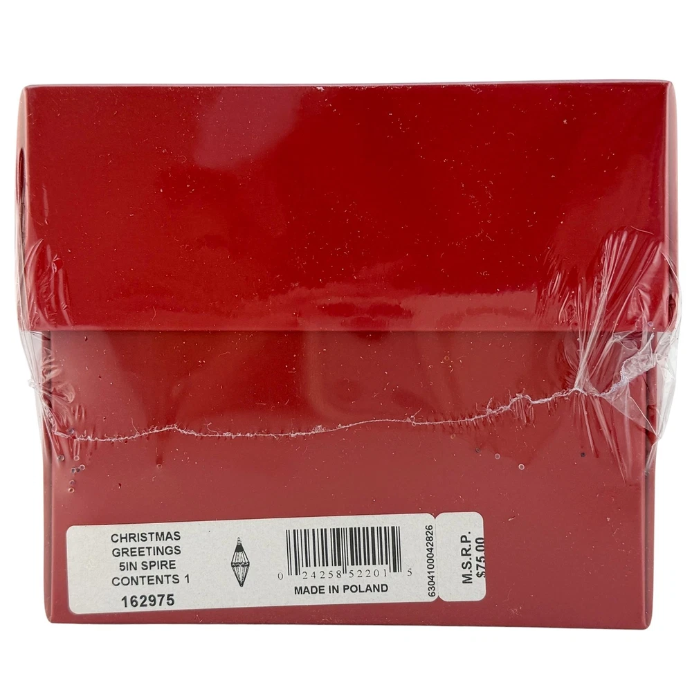 Waterford Crystal - Christmas Greetings 5" Spire Holiday Heirlooms Ornament~ New Old Stock For your consideration, "Christmas Greetings 5" Spire" Ornament. Beautiful jeweled spire ornament that hangs from a burgundy and silver ribbon with a silvertone medallion. The ornament has been translated into the technique of a mouth blown, hand decorated glass ornament made in Poland for Waterford. 5-3/4" Tall from cap to bottom Hand made and decorated Beautiful, damage-free Will arrive in the original sealed box , pictures out of the box are from one I sold last year that had been opened, this one has not. There appears to be a "crack" on the plastic window underneath the sealed wrap. "The name Waterford has been synonymous with fine quality and excellence in workmanship for over two centuries. For generations, the master craftsmen at Waterford Crystal have been creating the most beautiful and sought after crystal in the world. Waterford Holiday Heirlooms bring the tradition of hand cut crystal from the world's leading artisans to a collection of handcrafted holiday ornaments that reflect and illuminate the spirit of the season. The Holiday Heirloom ornament was created by highly skilled glass-blowers using centuries old techniques handed down from generation to generation. Artists skilled in the application of intricate detail painstakingly adorn and decorate each piece. The charm of handcrafting gives unique characteristics to your ornament. No two are exactly alike. With signature flourish, a Waterford inscribed hanger cap and coordinating with ribbon crown your Holiday Heirloom ornament." Ships insured Have more Christmas listed Value Added Service We answer emails personally and understand you have concerns and questions that may be outside of the scope of the auction copy Feedback is left by us when we receive your payment. It's the very least we can do to thank you for putting your trust in us We know how to pack, using the proper materials to best protect your purchase Shipping Buyer is responsible for shipping costs, unless the listing is advertised as "Free Shipping". The shipping fee is either clearly stated or the eBay calculator determines shipping based on your zip code and the box particulars. Multiple purchases may have an unknown shipping rate due to fluctuations in weight but items will be combined to save money whenever possible. Insurance is always provided by us to cover loss or in the rare instance, damage If you intend on bidding on multiple items, please let us know so we don't start packing in advance In the case of damage in an insured shipment: Retain all packing materials and the box that was received. Please submit digital images of the damage as well as the shipping box and packing materials via Contact Seller in eBay. Returns If you receive something not as described due to a blatant mistake on our part, we'll pay everything; return shipping as well as a full refund of the purchase price and the original shipping Buyer's Remorse: We are flexible if a purchased item arrives and you simply change your mind. A 15% restocking fee will be charged and return shipping is at buyer's expense Please notify us within three days of item(s) receipt and for pre-authorization (use the contact button). The item(s) must be returned and received in the same condition as when originally shipped. Item(s) must be returned shipping prepaid, insured for the full value and safely wrapped and packaged to prevent shipping damage. Unless stated as new, these pieces have been around for many years, some as many as 100 years and are sold as described. They may have been displayed, used, washed, packed, etc The pictures and descriptions are as detailed as possible, and all reasonable care has been taken to describe as accurately as possible along with any damage or issues noted. However, vintage and antiques are previously owned If anything less than perfect, out of the box, isn't acceptable, these style pieces may not meet your standards.
