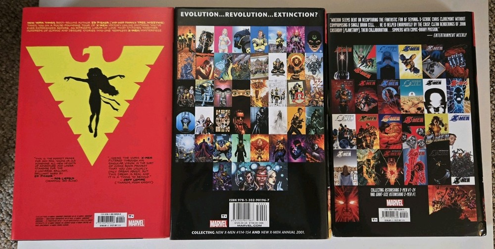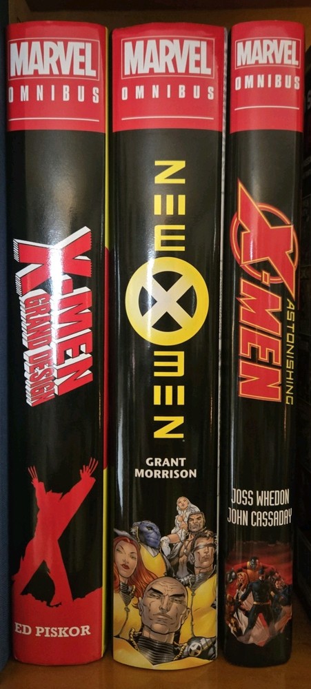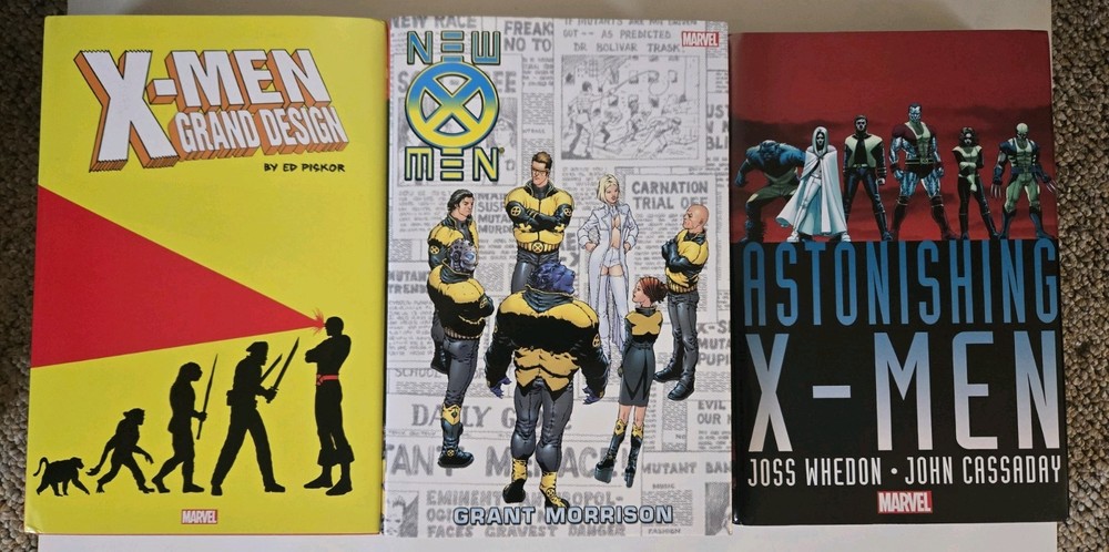 These are original photos and the EXACT copies you will receive. This lot includes 3 omnibus editions of popular X-Men comic books, which consists of "New X-Men," "Astonishing X-Men," and "X-Men Grand Design." The omnibuses feature famous characters such as Jean Grey, Cyclops, and Wolverine, among others, and are written by acclaimed authors like Grant Morrison and Ed Piskor. With stunning cover art and published by Marvel Comics, these omnibuses are a must-have for any X-Men fan looking to delve into the modern age of American comics. These are used but in good condition. You will receive 1 copy of each book. 1x New X-Men 1x Astonishing X-Men 1x X-Men Grand Design