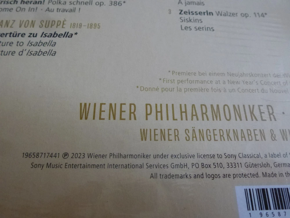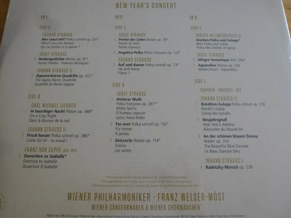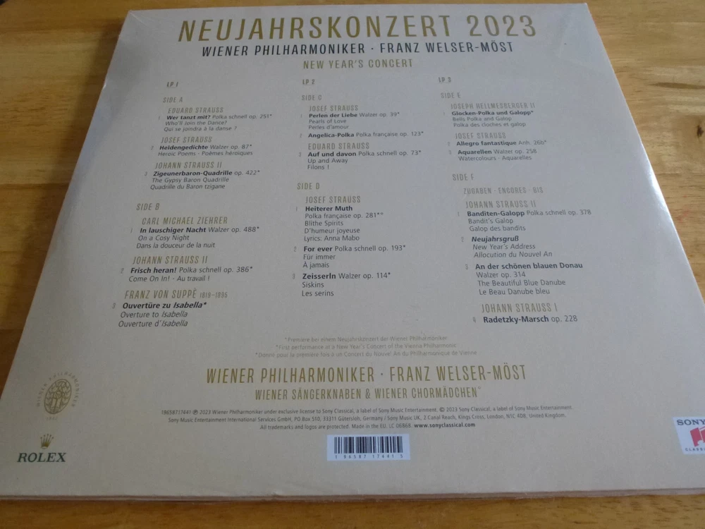 TITLE & ARTIST: NEW YEARS EVE CONCERT 2023 VIENNA PHILHARMONIC FRANZ WELSER-MOST SONY CLASSICAL 2023 X3 TRIPLE VINYL LP NEW FACTORY SEALED. (*WHICH PLAYS AT 33 & 1/3) CONDITION OF THE RECORD: 100% MINT 100% NEW STILL FACTORY SEALED. POSTAGE: I WILL SEND THE RECORD(S) IN HEAVY THICK STRONG CARDBOARD.BY ROYAL MAIL 2nd CLASS SIGNED FOR. FINALLY THANKS FOR LOOKING,GOOD LUCK & HAPPY EBAYING.