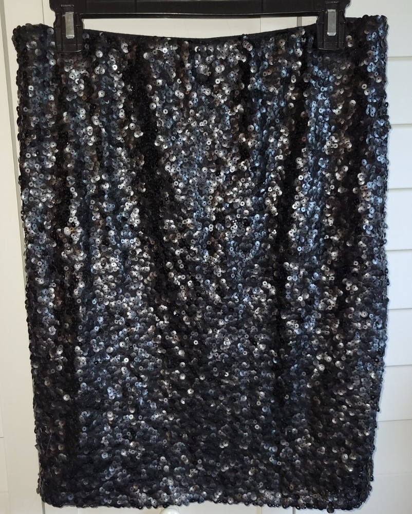 Accents: Sequin Color: Black Department: Women Fabric Type: Stretchy Skirt Length: Knee Length Pattern: Solid Style: Straight, Pencil Closure: Pull On Occasion: Party/Cocktail Fabric Wash: Dark gtin13: Does not apply Size Type: Regular Rise: n/a Material: Polyester Blend Theme: Party Size: S Brand: New York & company UPC: Does not apply Vintage: No Seller Notes: “Excellent used” Features: Elastic Waist Character: none Type: Skirt