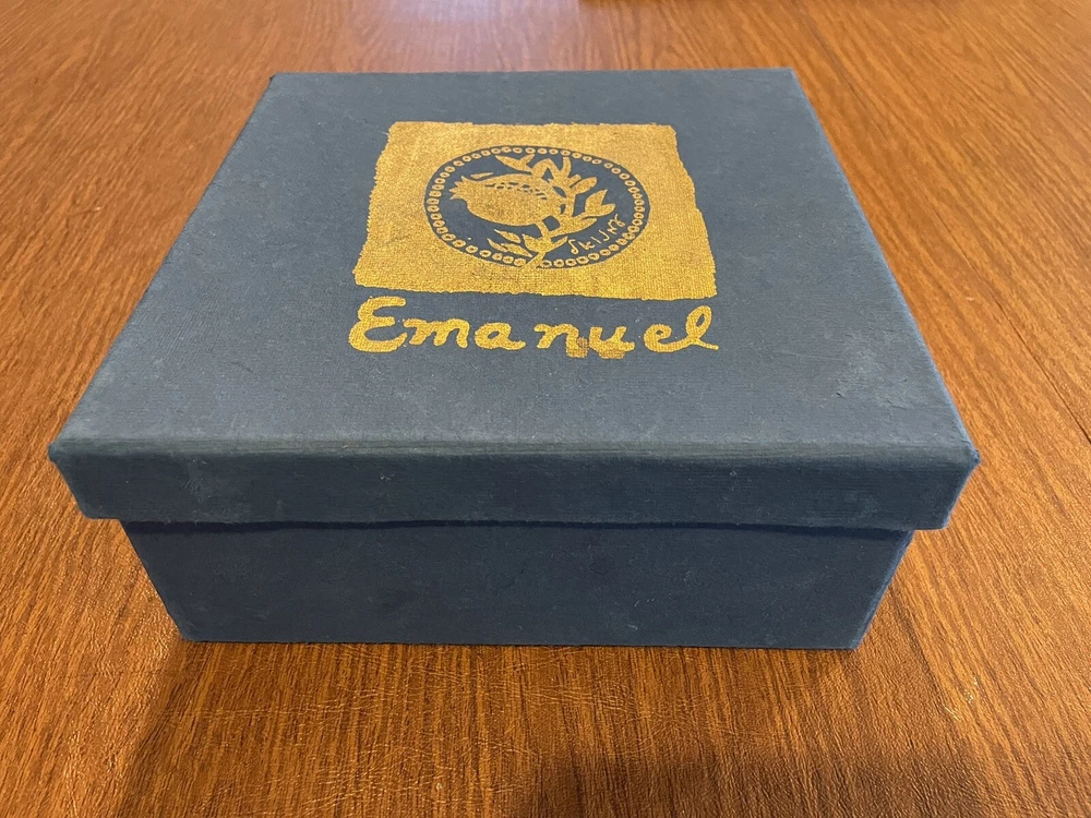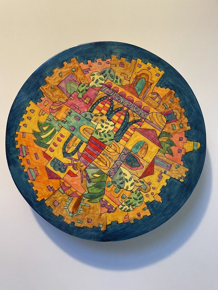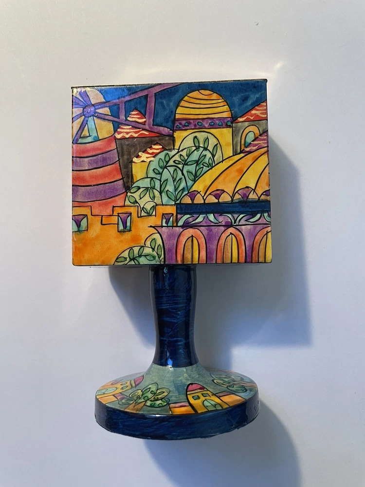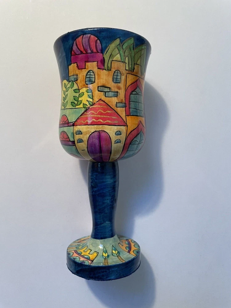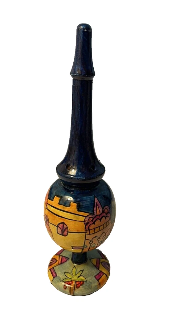 A new and beautiful 4-piece havdala set: tray, candle holder, spice box (b'samim), and cup. Hand painted.Still in its original box and packaging--never used. The original packaging was removed only once, to take these photographs, then immediately restored. For a description of the condition, please see above and the pictures provided. Items are shipped via USPS ground advantage, to the US only. Items are sold AS IS NO RETURNS. Packed well with ample bubble wrap and sturdy cardboard. I combine orders to save you shipping costs. Enjoy!