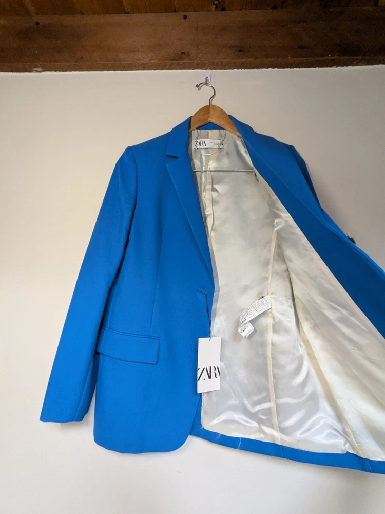 Zara 2 Piece Suit - Mini Skirt and Jacket Blazer Women Size Small Blazer is a viscose material, skirt is polyester. Both items are BNWT, never-worn condition. See pictures to verify condition, additional info / pictures available on request Thanks for looking!