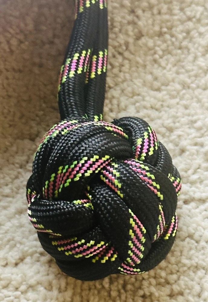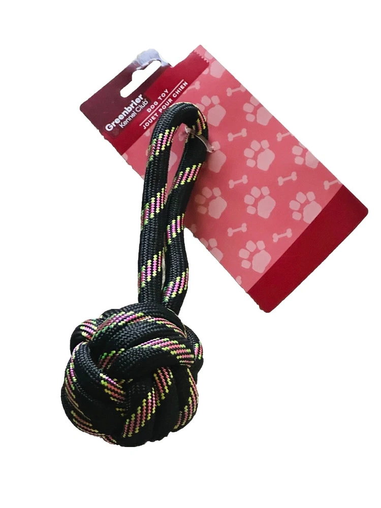The product is a high-quality dog toy featuring a rope ball design, suitable for dogs of extra-large, large, and medium sizes. The toy is made of durable rope material and is manufactured in China under the Greenbriar brand. It comes brand new with the original tags still attached, indicating its freshness and unused condition. This rope toy is designed to provide entertainment and playtime for dogs, offering both mental stimulation and physical exercise.