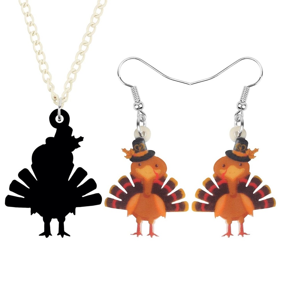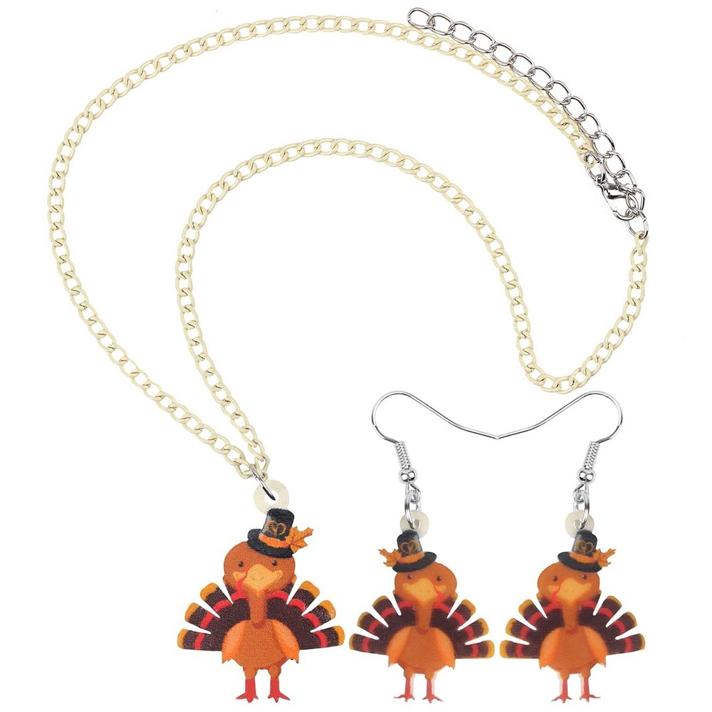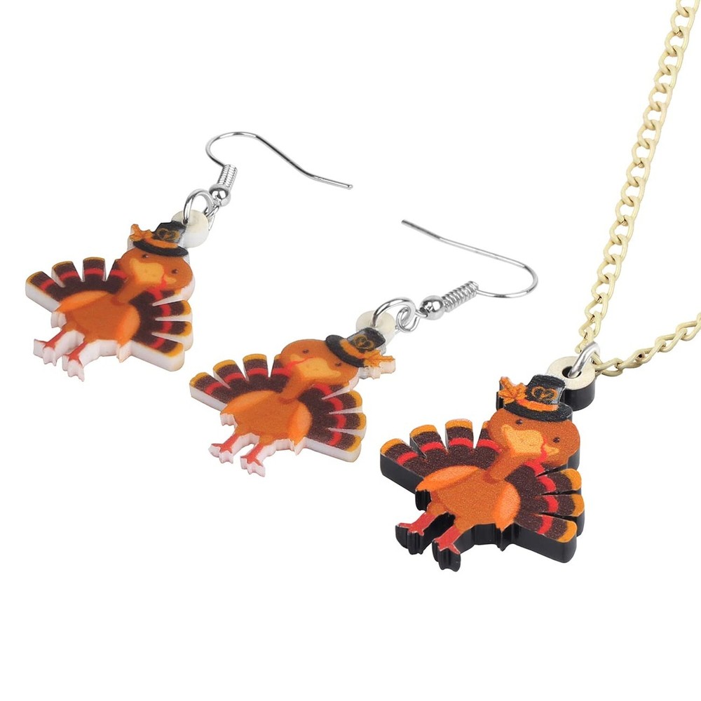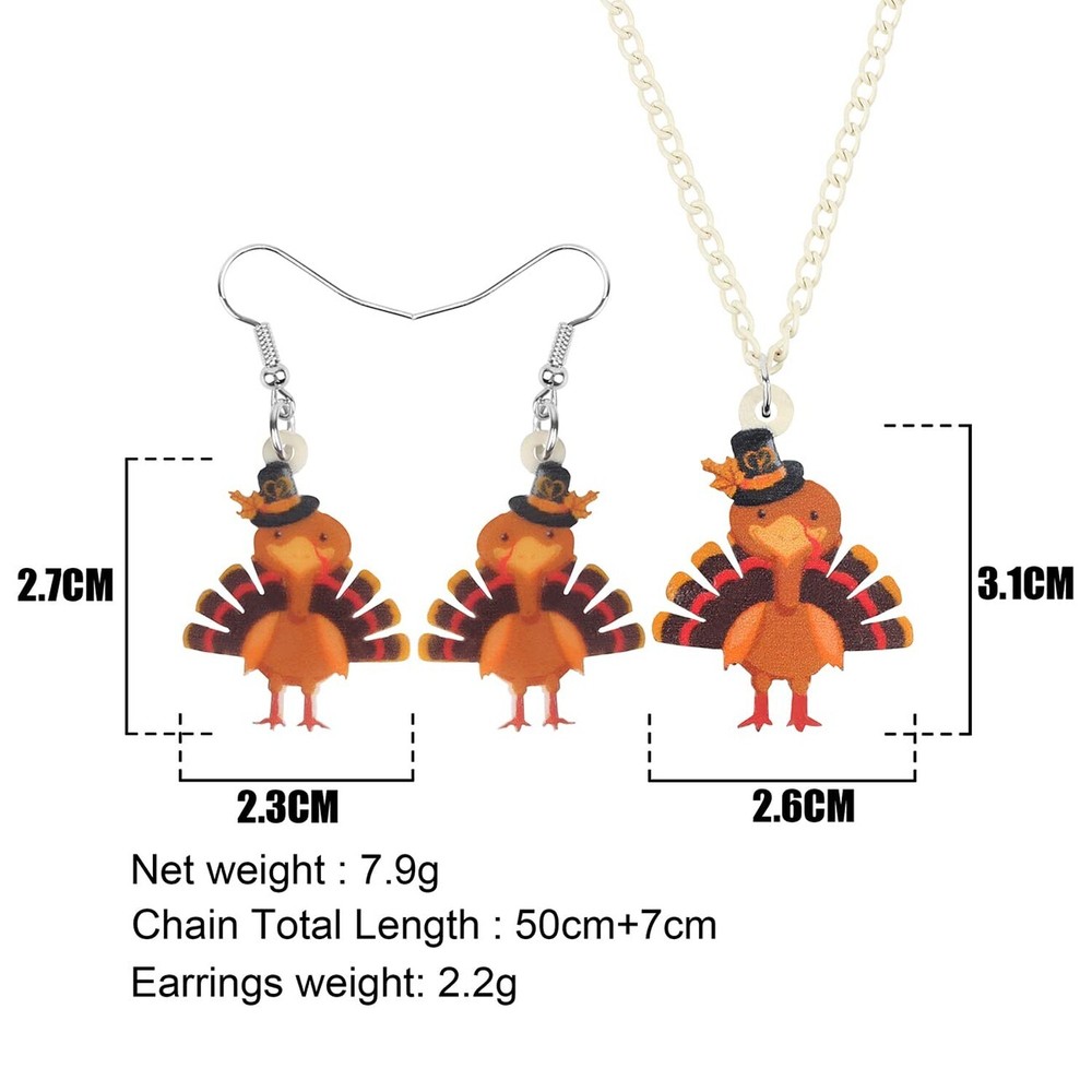 NEWEI Cute Thanksgiving Turkey Jewelry sets for Women Acrylic Chicken Thanksgiving Holiday Jewelry Pendant Necklace Dangle Earrings Sets Product Details Style: Pumpkin Thanksgiving Turkey #1 Brand: NEWEI MPN: Does not apply UPC: Does not apply EAN: Does not apply Product Dimensions : 1.18 x 1.14 x 0.17 inches; 0.67 ounces Department : womens Date First Available : October 13, 2021 Brand, Seller, or Collection Name: NEWEI Metal: Stainless Steel Material: Acrylic Gem Type: No Gemstone Item Length: 1.18 inches Clasp: Lobster Clasp Both Sided Earrings,size :30mm x 29mm approximately 1.18"tall & 1.14" width weight :3.3g Necklace chain length: 50mm+7mm" Size :37mm x 40mm Charm size approximately 1.46"tall & 1.57" width Necklace weight :15.8g