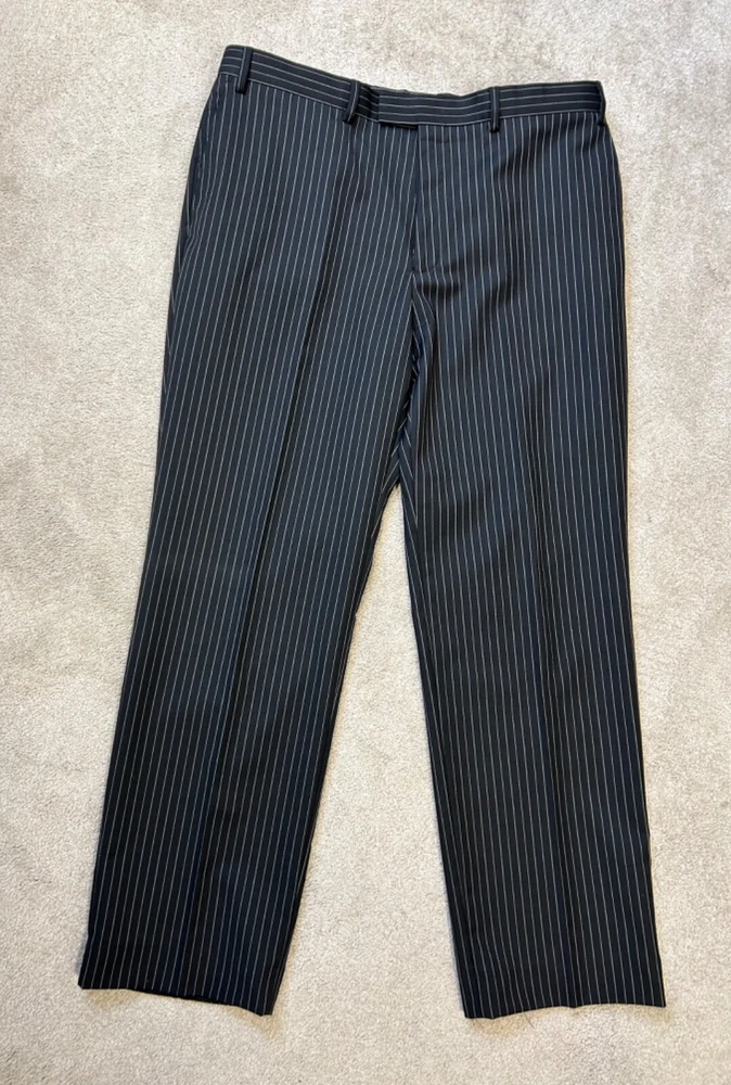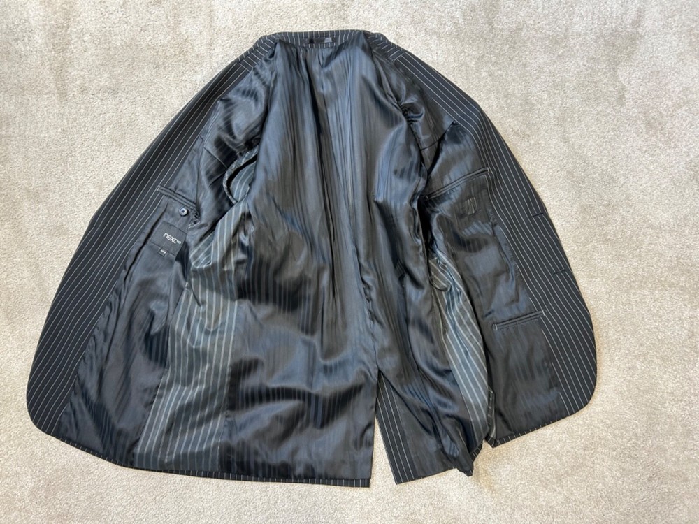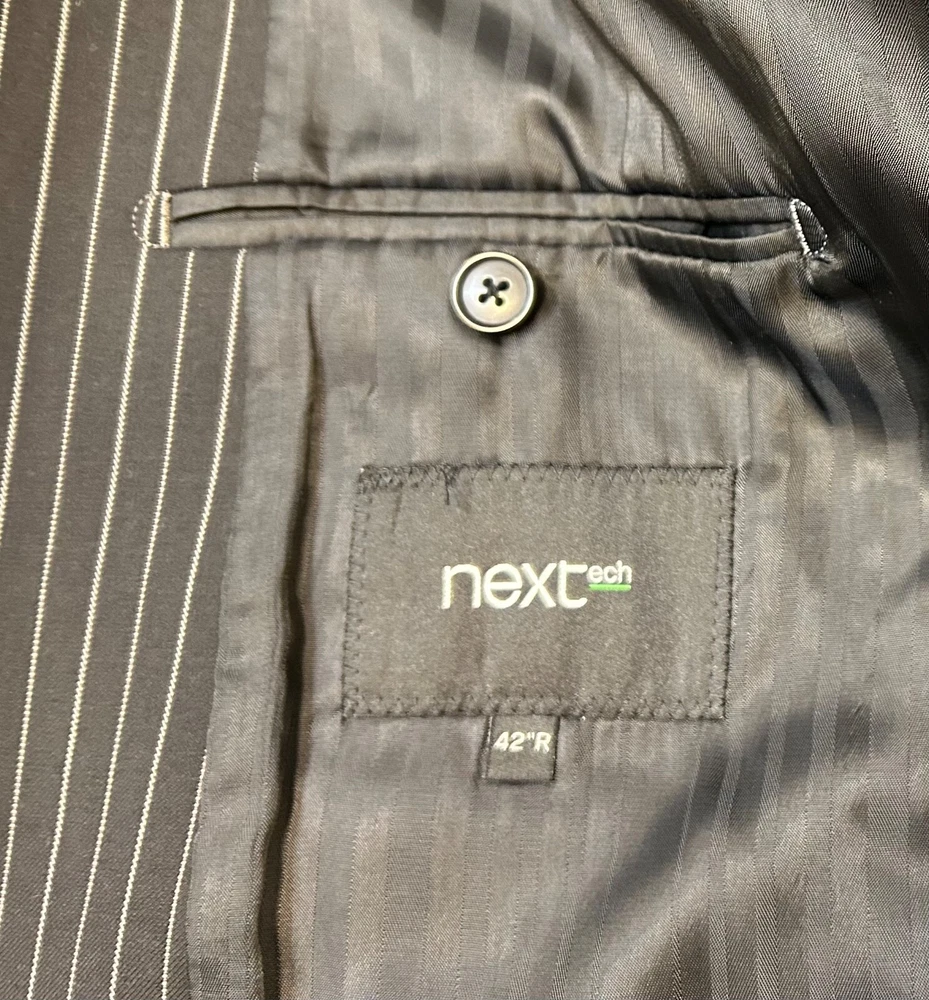 Occasion: Business, Party/Cocktail, Wedding Season: Autumn, Spring, Summer, Winter Lining Material: Polyester Number of Pieces: 3 Piece Jacket Vent Style: Single-Vented Garment Care: Dry Clean Only Jacket Sleeve Button Style: Three-Button Colour: Black Material: wool nlend Brand: NEXT Waist Size: 38 in Department: Men Style: 3 Piece Jacket Cut: Single-Breasted Size Type: Regular Fit: Regular Size: 42 Leg Style: Straight Inside Leg: 32 in Front Type: Flat Front Type: Suit Jacket Lapel Style: Notch Jacket Front Button Style: Two-Button Chest Size: 42 Jacket/Coat Length: Regular Pattern: Striped