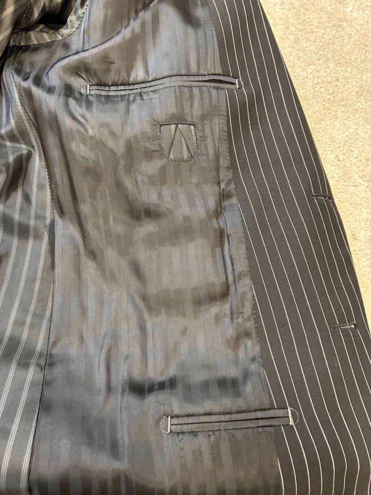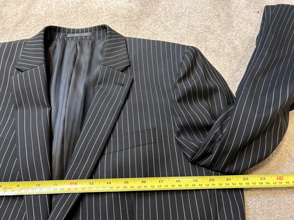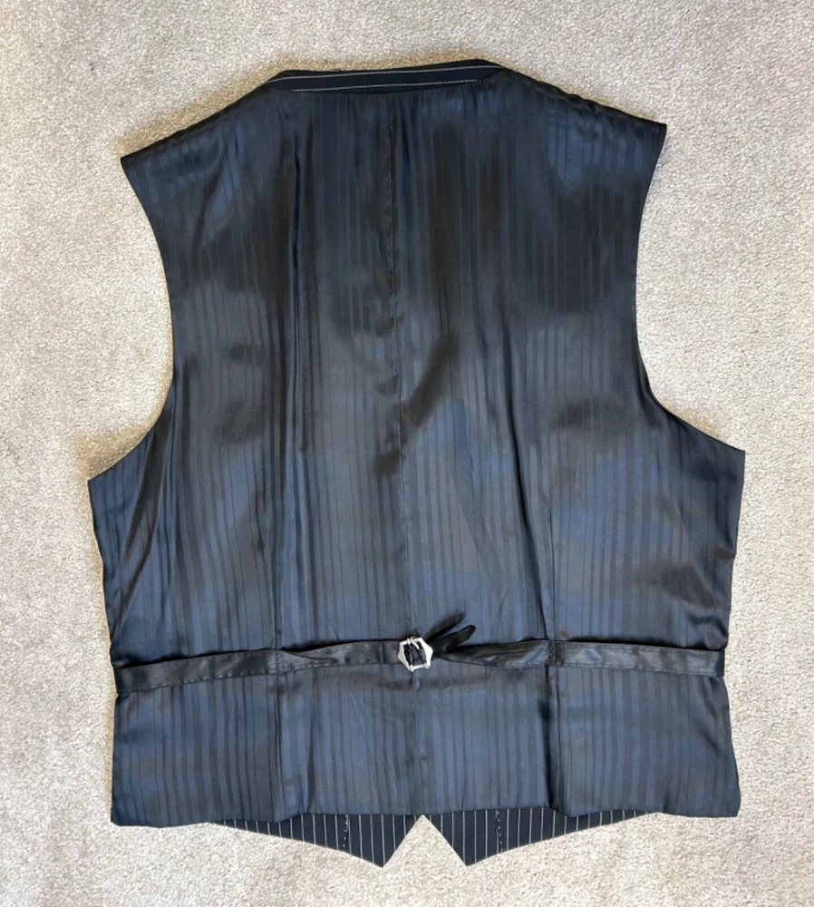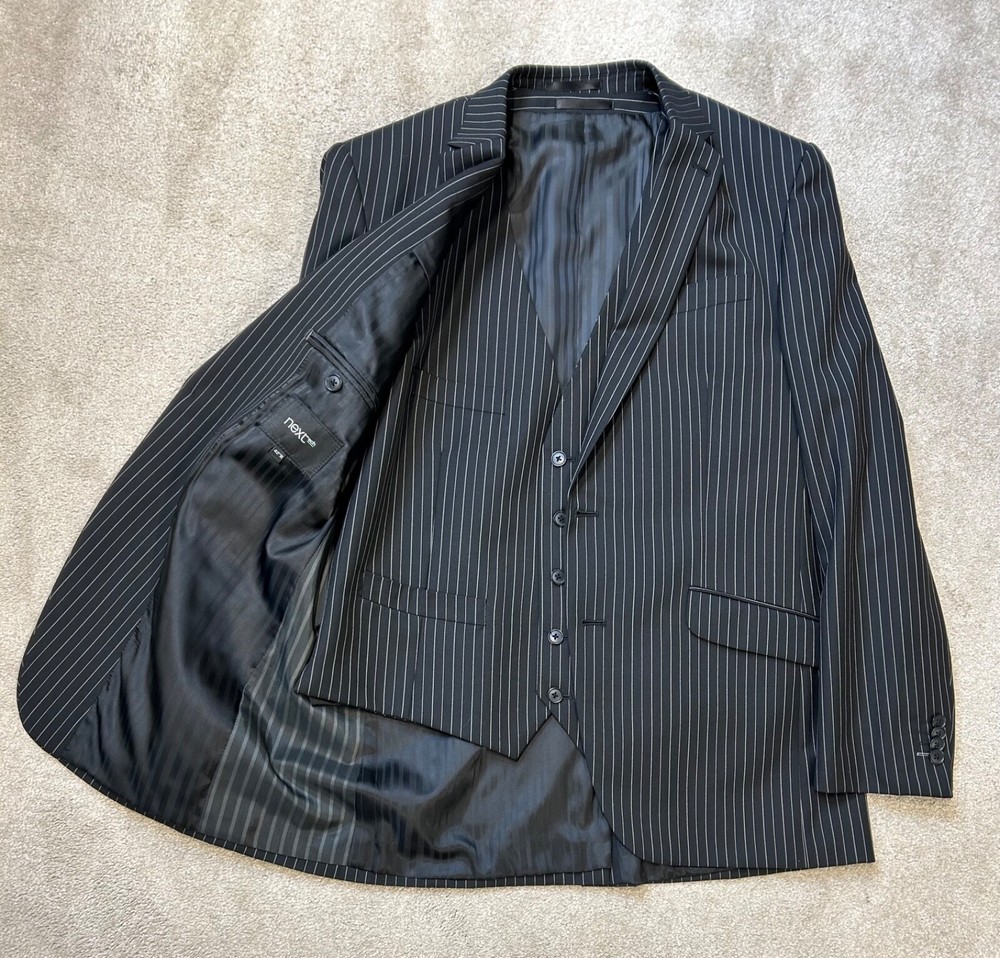 NEXT Mens Suit Black Stripe Wool Blend 3 Piece Suit UK Chest 42 Waist 38