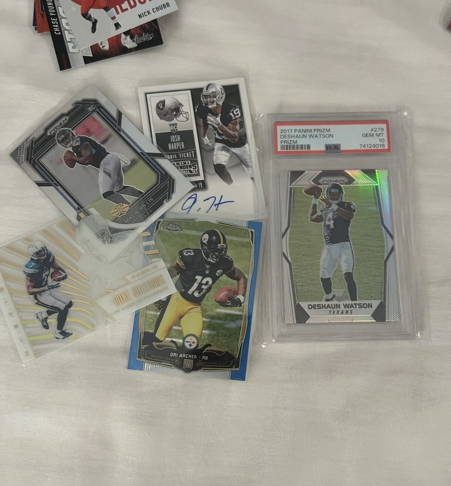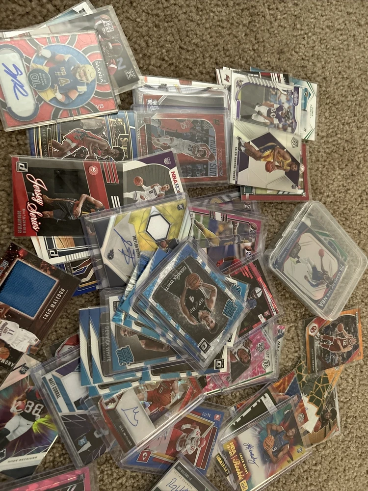 NFL AND NBA MYSTERY HOT PACK. CHASERS: AUTOS, NUMBERED, RPAs, PATCHES! |Read|. New Nfl And Nba mystery Hot packs! Each pack contains 20-30 nfl and nba cards. Cards shown on the pictures are only some of the hits you can get, there are many more autographs,rookies, and patches that you can receive. Over half of the packs contain a rookie autograph and if you don’t receive this your pack can contain a patch or 1 or more numbered cards. Each pack can contain many rookie cards mainly from 2017 to now. Packs can contain multiple autographs,numbered cards, or patch cards! Cards will also be sent in card sleeves or top loaders. Message me with any questions you may have and also feel free to message if you want any specific players,teams or if you only want one of the sports in the titles!!!