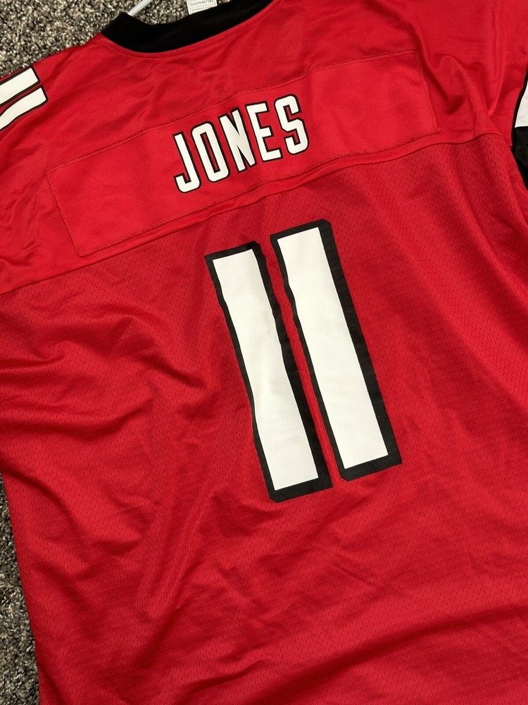 Team:Atlanta FalconsCountry/Region of Manufacture:GuatemalaProduct:JerseyModified Item:NoUPC:Does not applyBrand:NFL PRO LINEColor:RedGender:MenPre & Post Season:Regular SeasonSize:2XLPlayer:Julio Jonesgtin13:Does not applyFeatured Refinements:Mens Football JerseysLeague:National Football League (NFL)Sport:Football-NFL